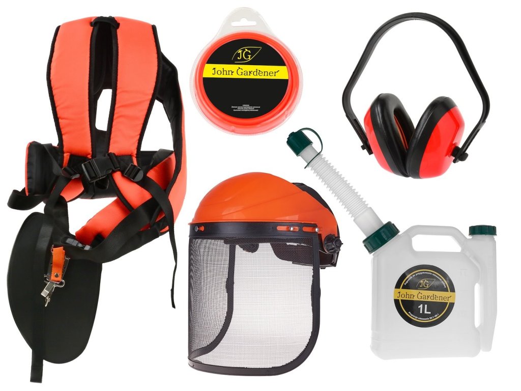 Pri delu s koso JG vedno uporabljajte zaščitno masko, ščitnik za boke in ščitnike za sluh, ki so priloženi v paketu, za vašo maksimalno zaščito vida in sluha. S temi pripomočki bo vaše delo učinkovito in varno.