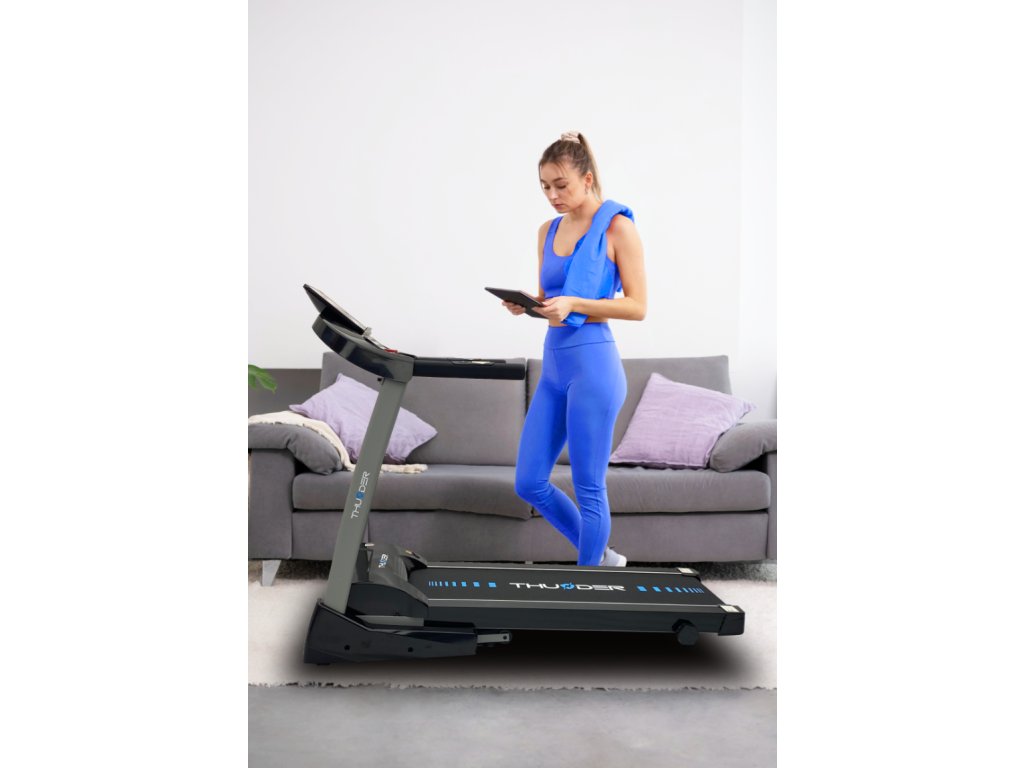 Hrepenite po telesu, polnem energije in zdravja? Tekalna steza THUNDER® NETO je vaša pot do doseganja neverjetnih ciljev kar iz udobja vašega doma. Zahvaljujoč pametnim aplikacijam in širokemu naboru možnosti vadbe lahko svojo vadbo prilagodite točno tako, kot želite.