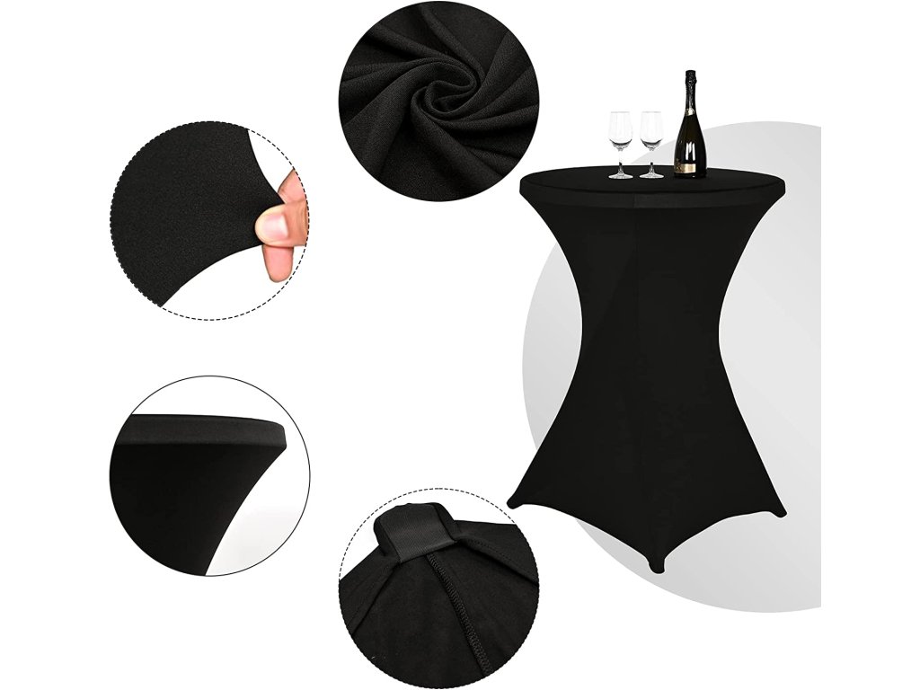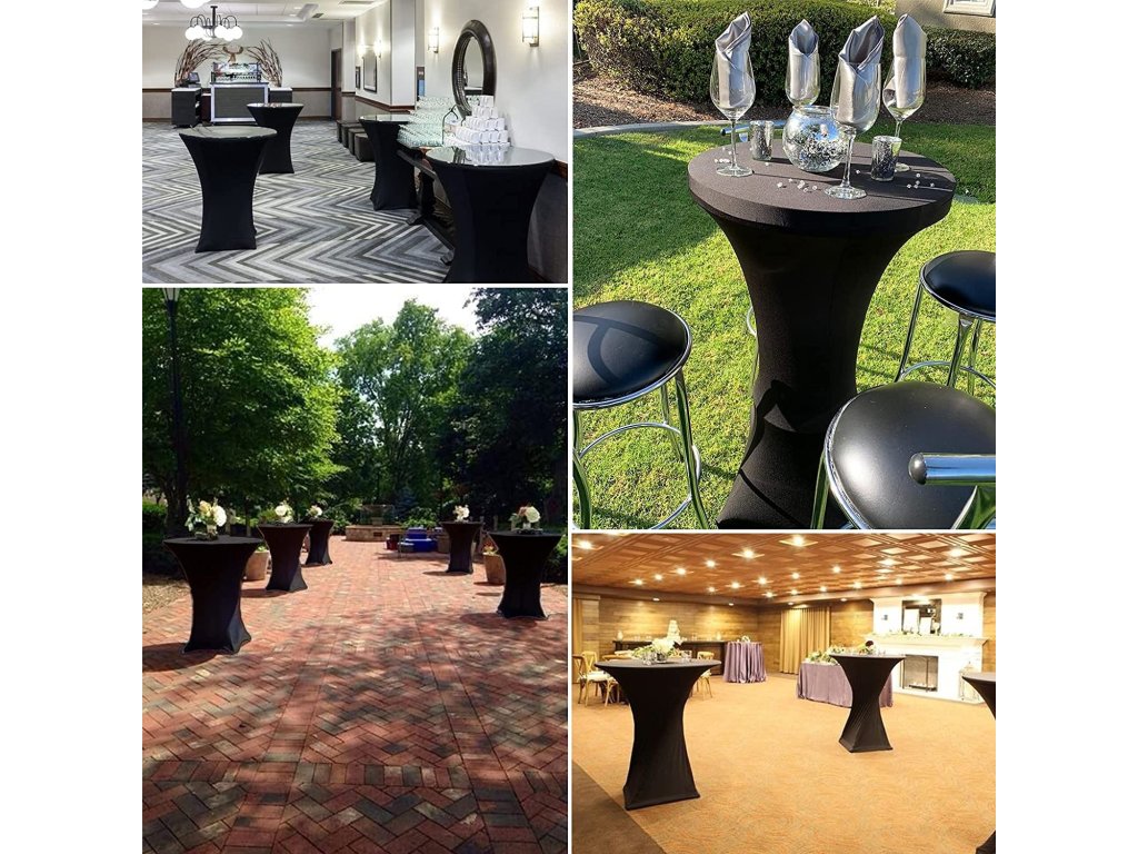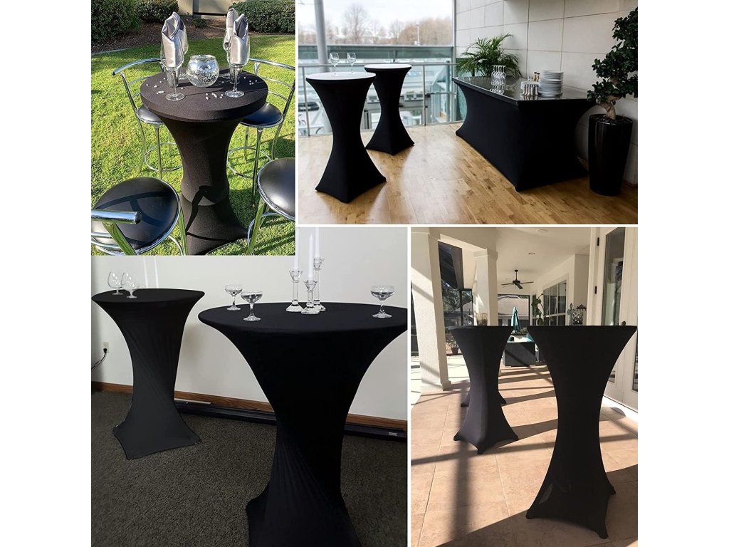Elastična prevleka za koktajlne mize je primerna za širok spekter dogodkov, od formalnih zabav in porok do neformalnih družinskih srečanj in zabav. Zaradi svoje elastične konstrukcije se lahko prilagodi tudi nekoliko različnim dimenzijam, kar omogoča uporabo tudi na bistro mizah ali manjših konferenčnih mizah.