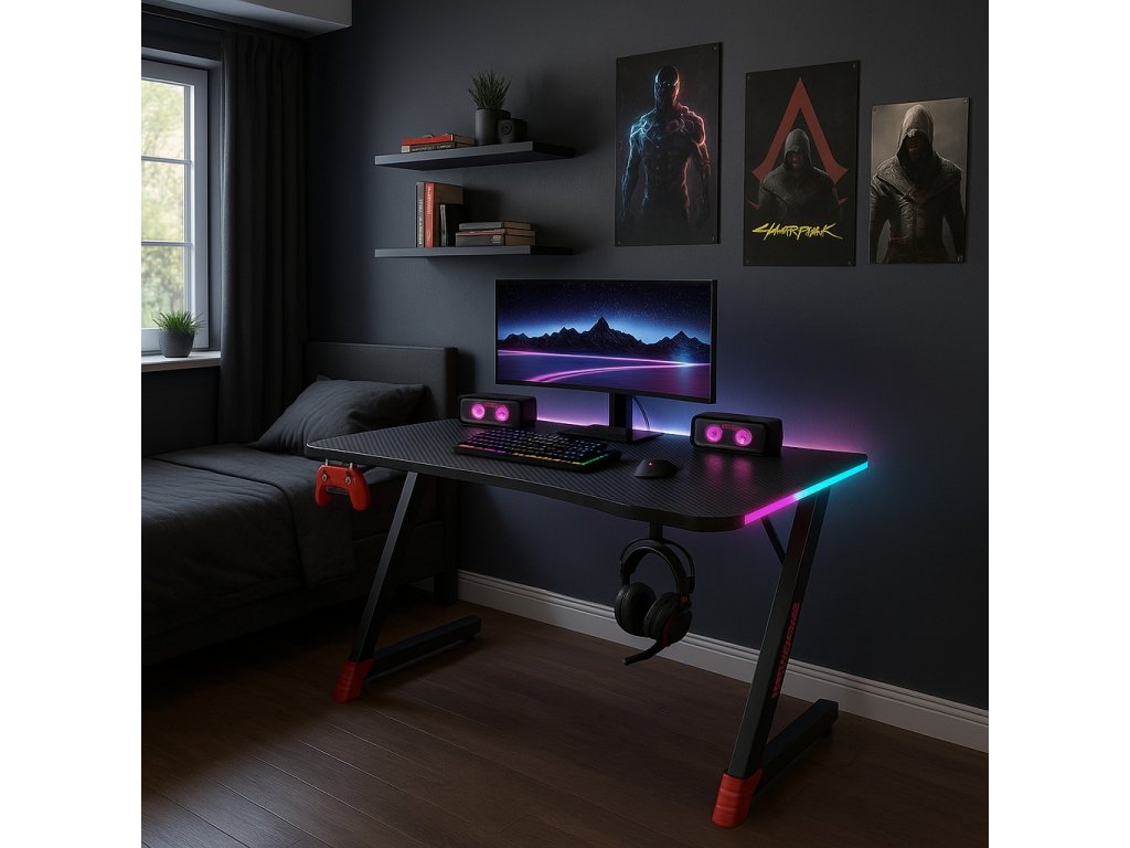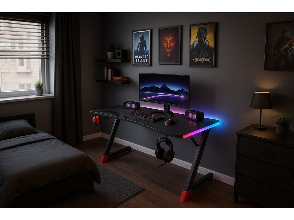 Iščete mizo, ki združuje igralno vzdušje s praktično uporabo pri delu ali študiju? Igralna računalniška miza z RGB LED osvetlitvijo bo postala osrednji element vaše sobe. Ponuja dovolj prostora, sodoben dizajn in pametne dodatke, zahvaljujoč katerim boste imeli vse potrebno vedno pri roki.