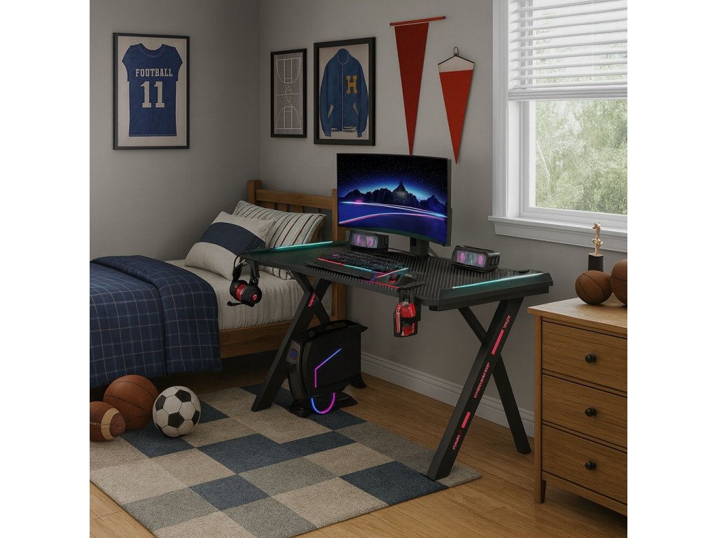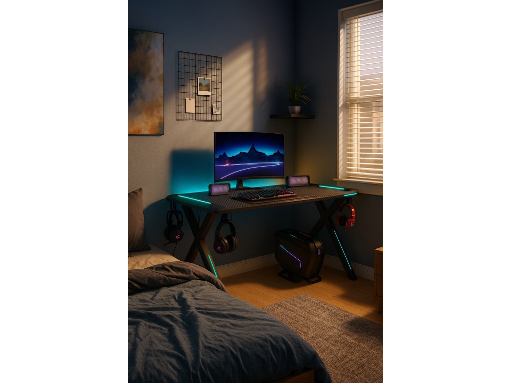 Iščete mizo, ki združuje igralno vzdušje s praktično uporabo pri delu ali študiju? Igralna računalniška miza z RGB LED osvetlitvijo bo postala osrednji element vaše sobe. Ponuja dovolj prostora, sodoben dizajn in pametne dodatke, zahvaljujoč katerim boste imeli vse potrebno vedno pri roki.