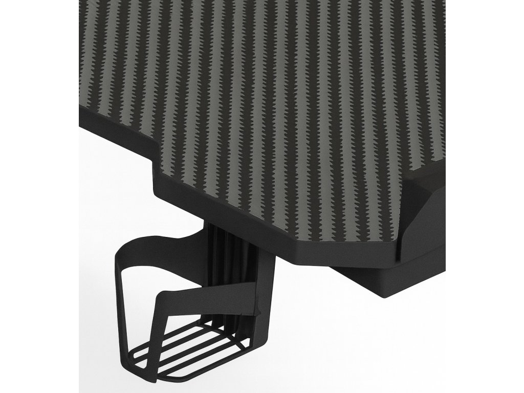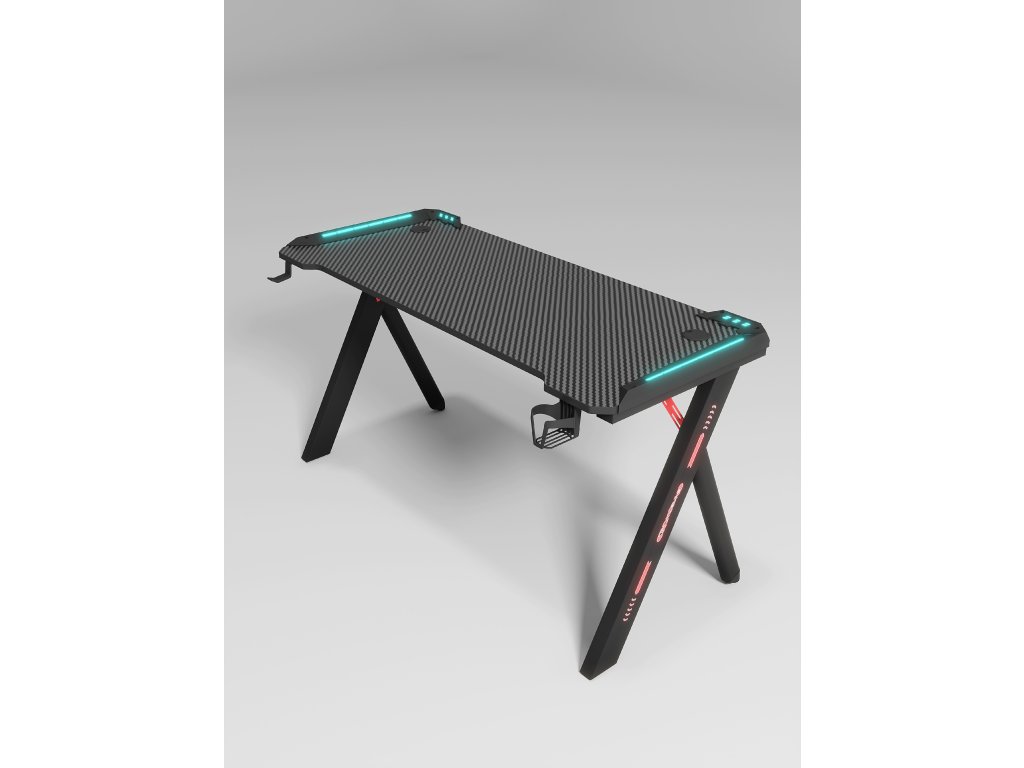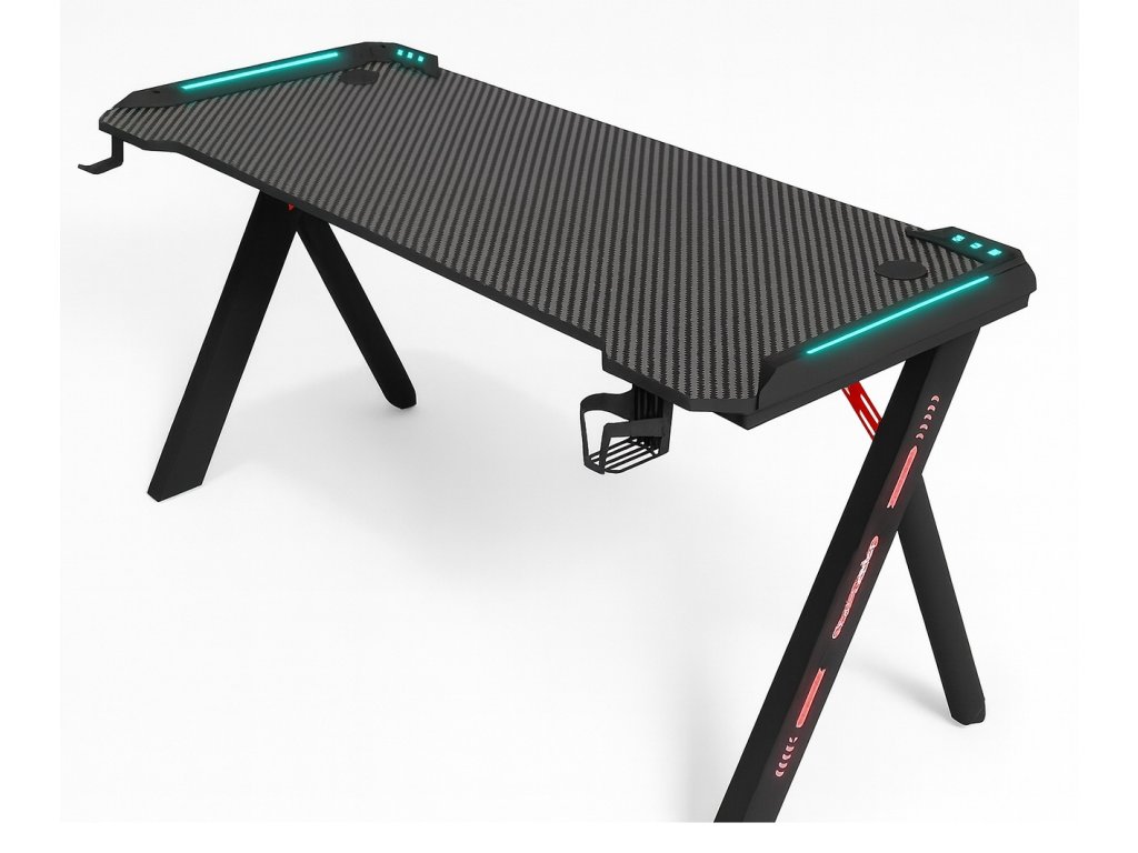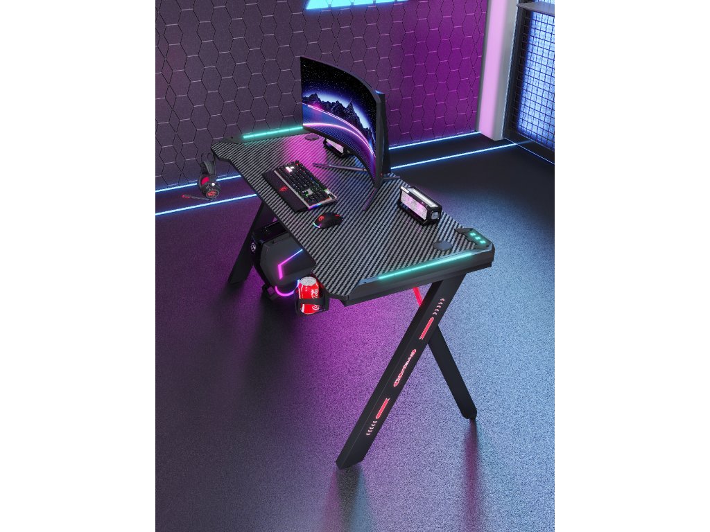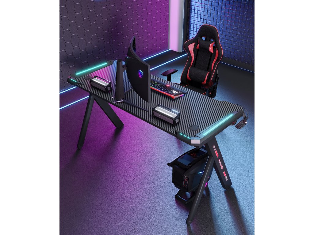 RGB LED trakovi ob straneh plošče ustvarijo edinstveno vzdušje pri igranju ali delu. Osvetlitev lahko priključite prek USB in prilagodite barvo ali učinek svojemu razpoloženju. Praktični prehodi za kable poskrbijo, da bo vaš prostor vedno urejen, medtem ko nosilec za pijačo in kavelj za slušalke zagotavljata maksimalno udobje.