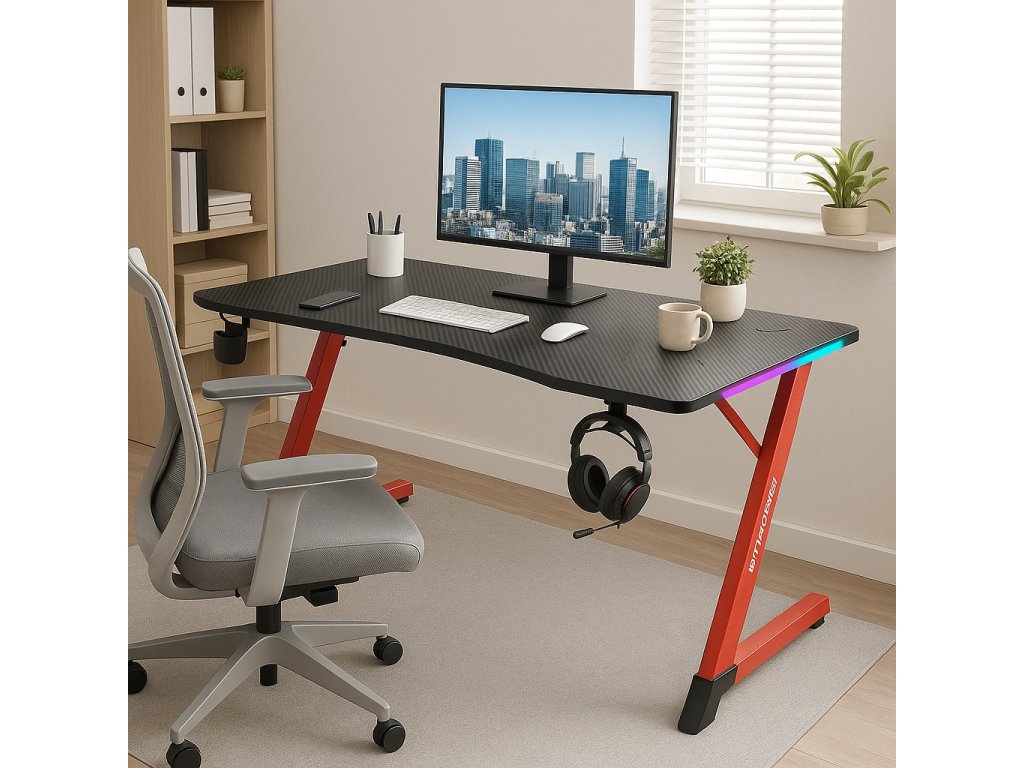 Iščete mizo, ki združuje igralno vzdušje s praktično uporabo pri delu ali študiju? Igralna računalniška miza z RGB LED osvetlitvijo bo postala osrednji element vaše sobe. Ponuja dovolj prostora, sodoben dizajn in pametne dodatke, zahvaljujoč katerim boste imeli vse potrebno vedno pri roki.