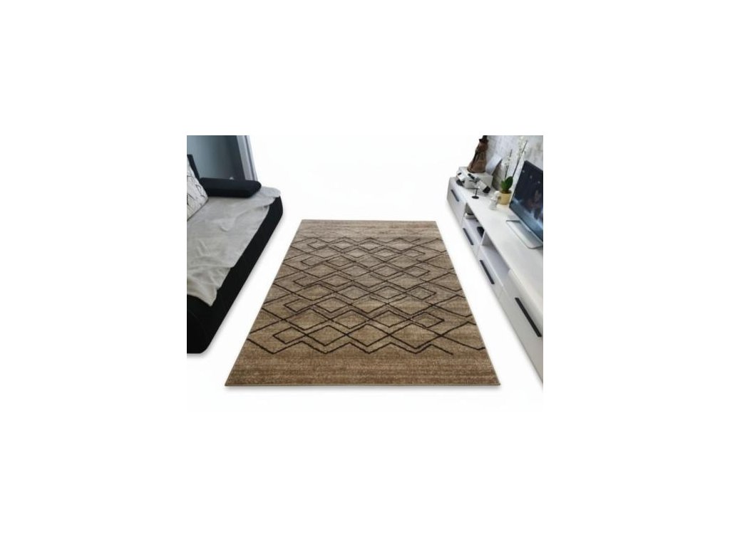 Na otip mehak preproga z vzorcem ustvarja občutek prijetnosti in zmehča celotno vzdušje. Dopolnjuje jo vinsko rdeč tabure z kovinskim detajlom, ki deluje kot oblikovalski nakit.