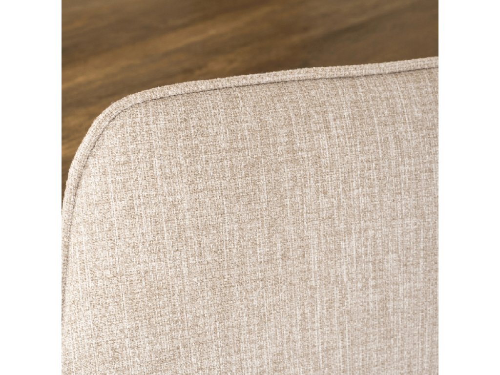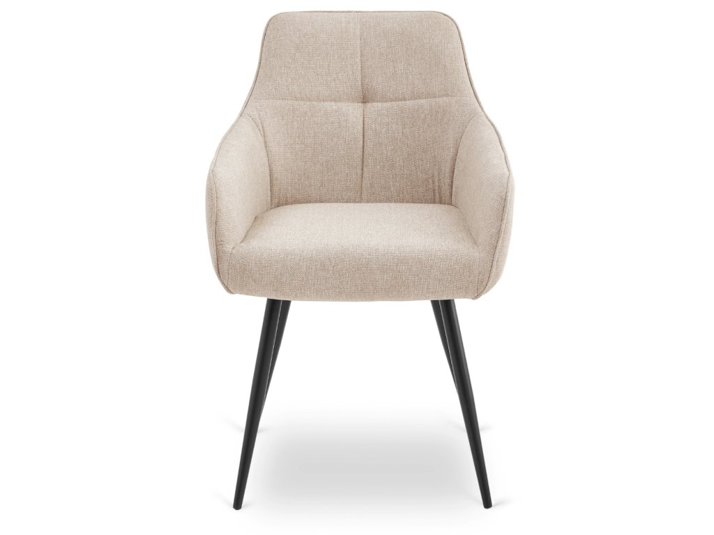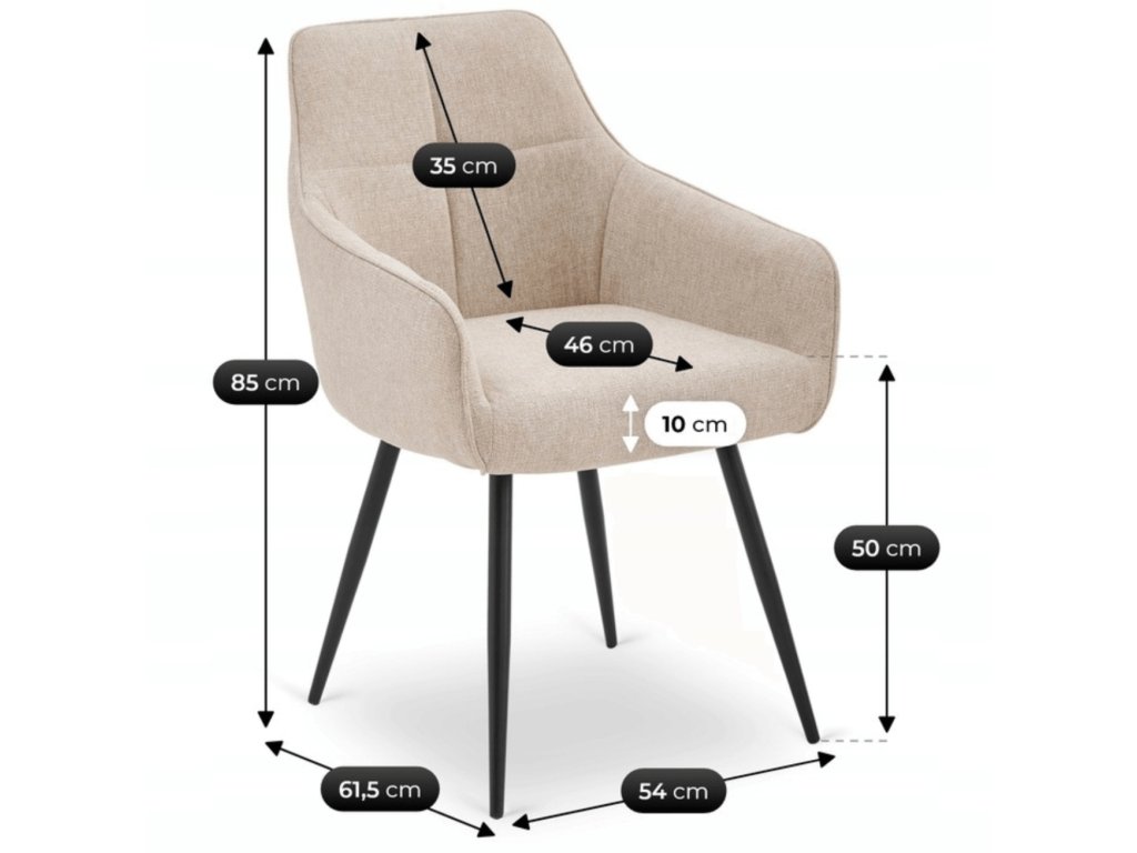 Stolica je oblazinjena s kakovostno tkanino, prijetno na dotik, ki je odporna na vsakodnevno uporabo. Bež odtenek prinaša v prostor toplino in harmonijo, medtem ko trdna kovinska konstrukcija v črni barvi zagotavlja stabilnost in varnost. Mehko 10 cm debelo sedišče z vgrajenimi vzmetmi nudi udobje tudi pri daljšem sedenju.