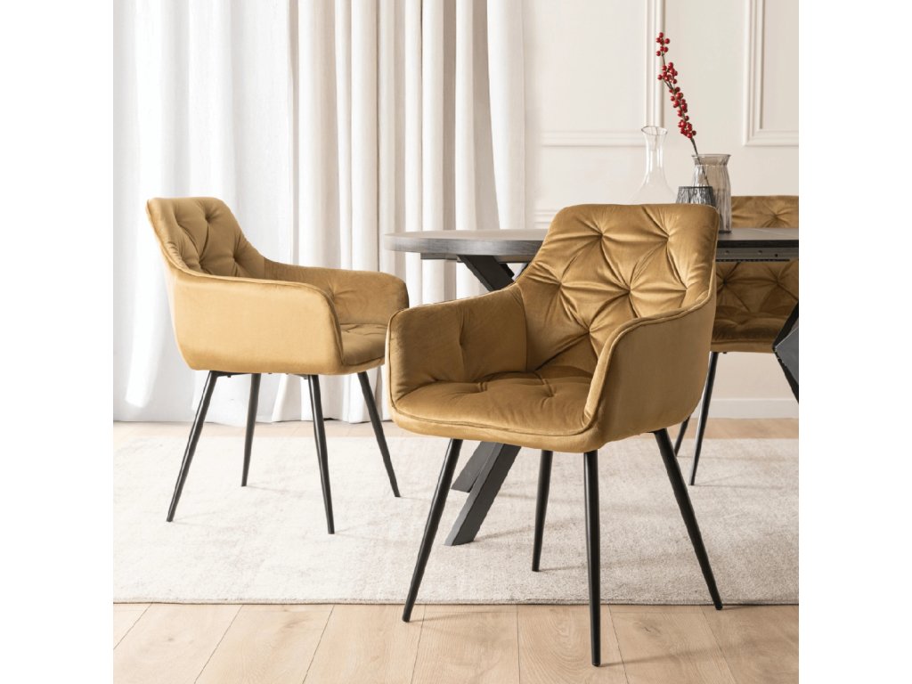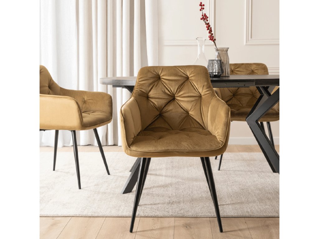 Iščete moderen in stilski dodatek za kuhinjo ali jedilnico, ki združuje eleganten videz in udobje pri vsakem sedenju? Jedilni stol Modesto v gorčični barvi je idealna izbira. Zaradi kombinacije kakovostnih materialov in dovršenega dizajna bo postal nepogrešljiv element vsakega modernega interierja.