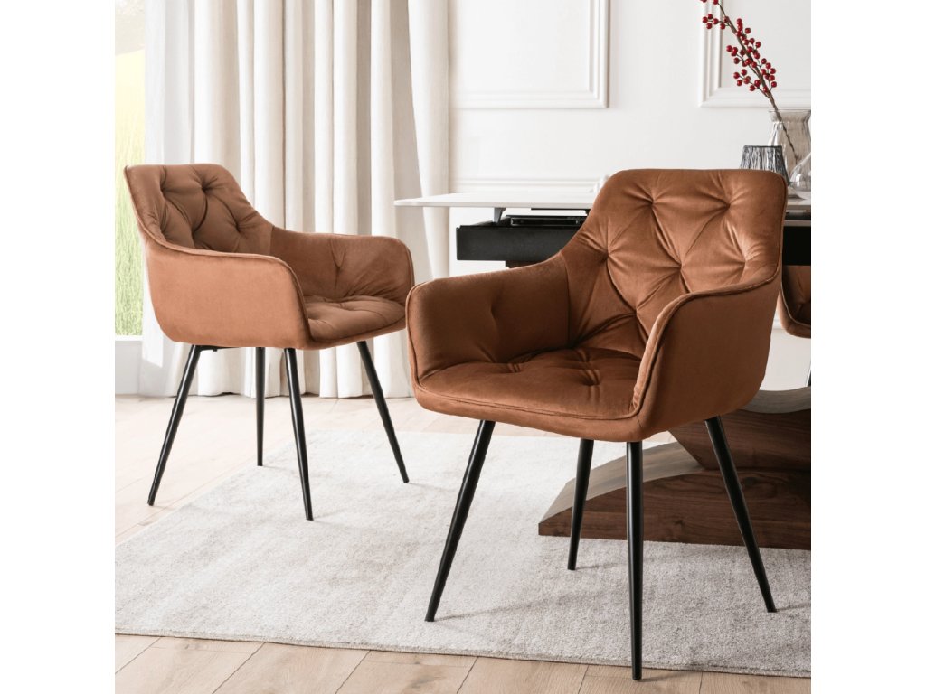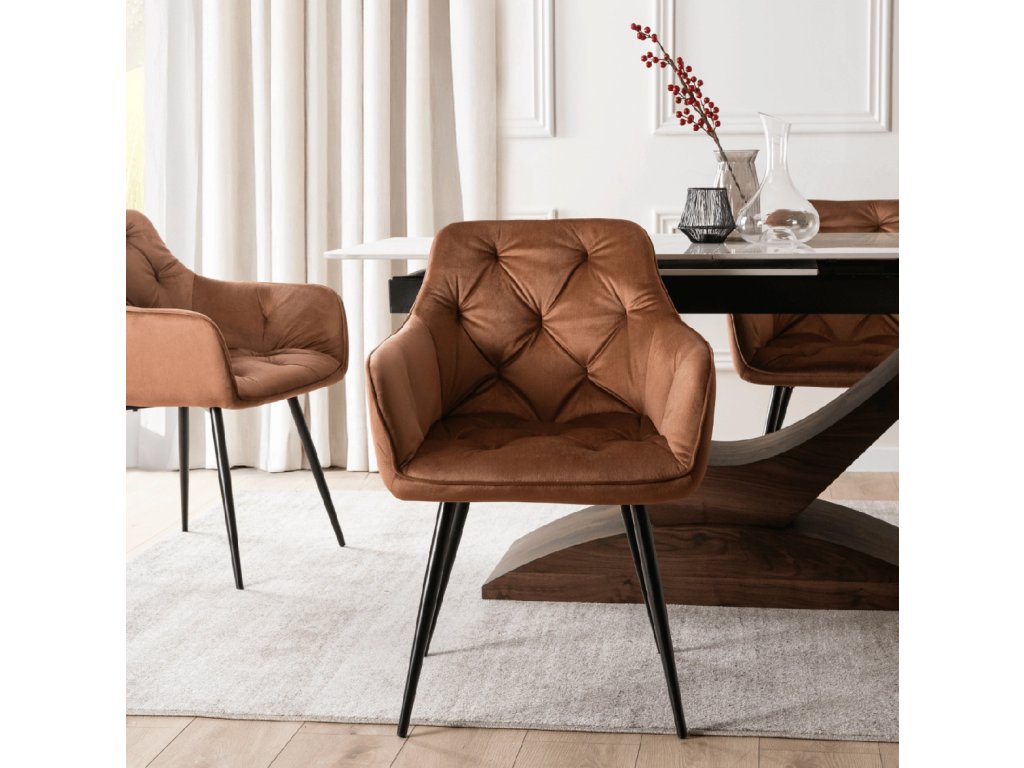 Jedilni stol Modesto ima oblazinjenje s 6-centimetrsko plastjo mehke pene, ki nudi izjemno mehkobo in je popolna izbira za dolge družinske večerje ali srečanja s prijatelji. Učinkovito prešivanje naslonjala in sedišča dodaja stolu eleganco ter ga spremeni v razkošen dodatek vašemu interierju.