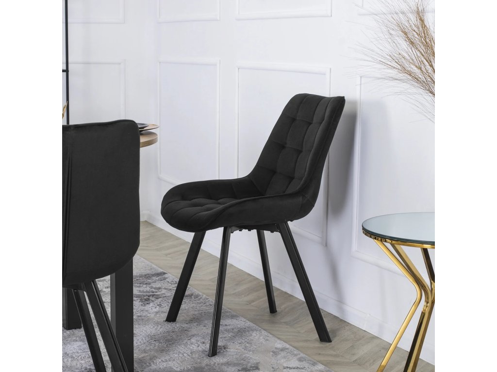 Jedilni stol Rick, material: žamet, jeklo, največja obremenitev: 120 kg, barva nog: črna, barva: črna
