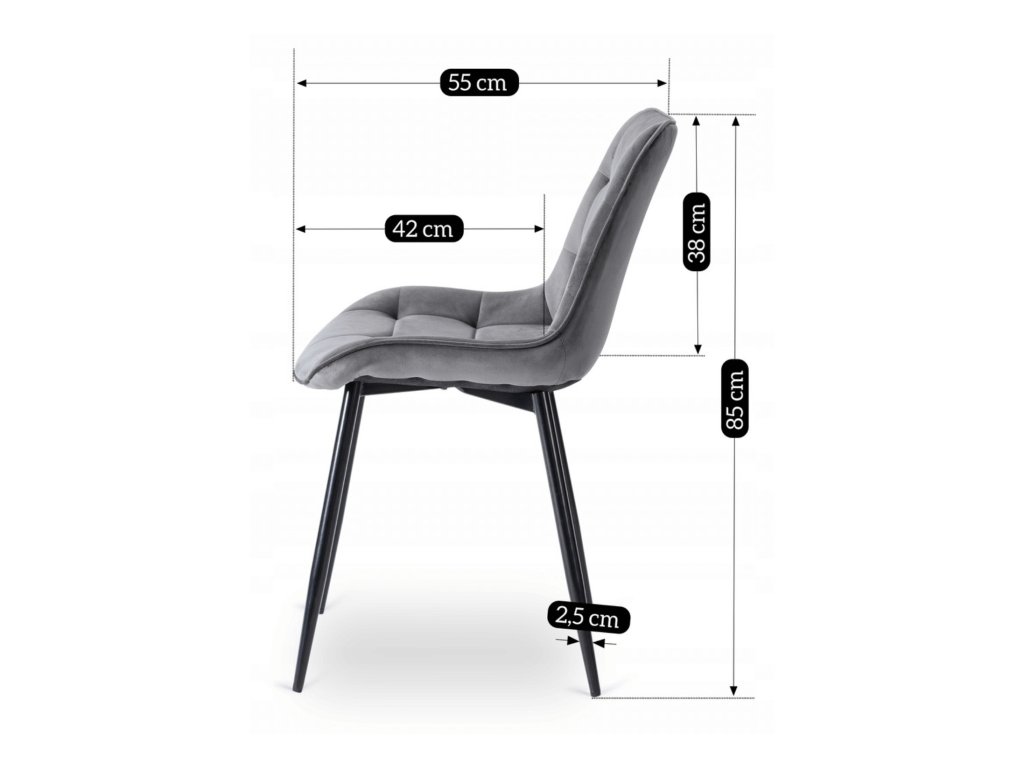 Jedilniški stol Chris je opremljen s 7-centimetrsko plastjo mehke oblazinjenosti, ki zagotavlja maksimalno udobje pri sedenju. Naslonjalo in sedalo sta dodatno okrašena z učinkovitim prešitjem, ki stolu doda dodatni čar in eleganco.