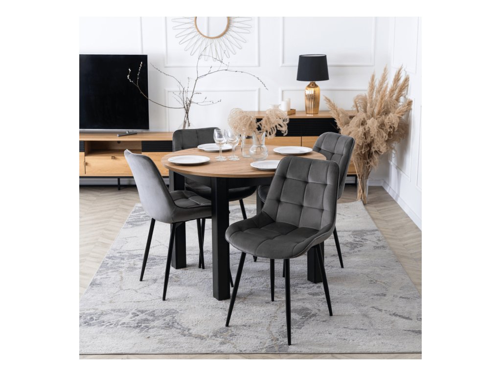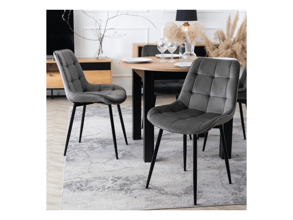 Noge stola so izdelane iz trdne kovine, kar mu zagotavlja odlično stabilnost. Kovinske profilirane noge imajo prašno lakirano prevleko v elegantni črni barvi, ki se zlahka kombinira z različnimi notranjimi elementi.