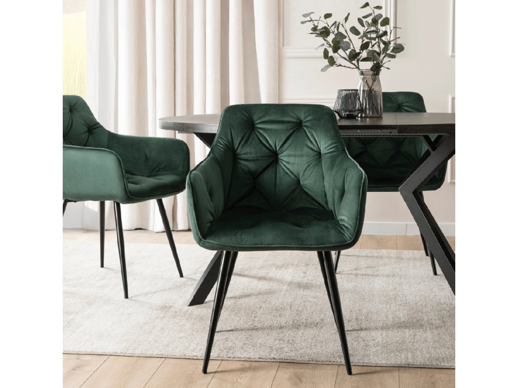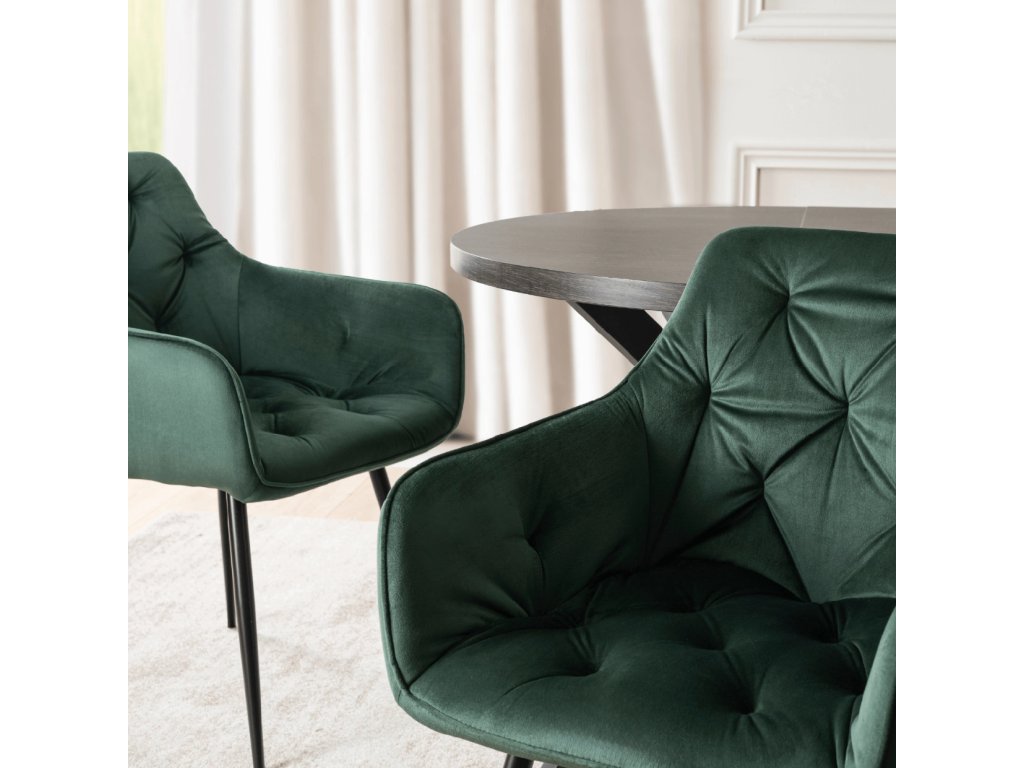Jedilni stol Modesto ima oblazinjenje s 6-centimetrsko plastjo mehke pene, ki nudi izjemno mehkobo in je idealno za dolge družinske večerje ali srečanja s prijatelji. Učinkovito prešivanje naslonjala in sedeža dodaja eleganco in stolu daje razkošen videz.