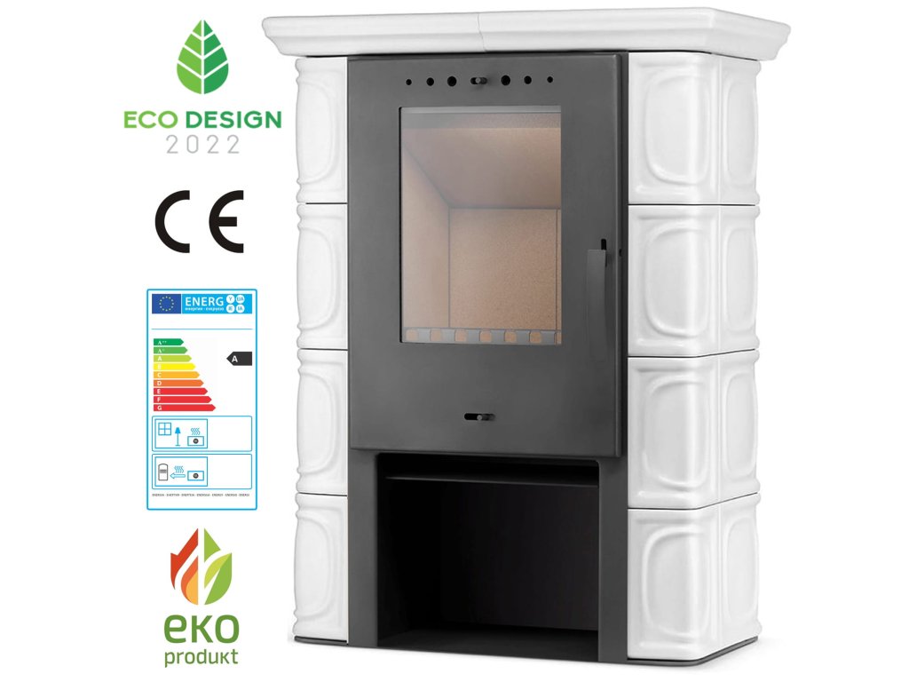 Elegantni samostoječi kamin ELDUR združuje zmogljiv jekleni vložek priznane blagovne znamke FLAMA (eden najboljših jeklenih vložkov na trgu glede kakovosti in tehničnih parametrov), ki izpolnjuje zahteve standarda ECO Design 2022, in klasično oblogo iz keramičnih ploščic, nameščeno na trdnem jeklenem okvirju. Celotna obloga kamina je izdelana iz najkakovostnejših ročno izdelanih keramičnih ploščic iz slovaške tovarne ploščic z dolgoletno tradicijo. Keramična peč odlično akumulira in oddaja toploto ter poudarja lepoto kaminov, zaradi glazirane površine pa je njeno vzdrževanje izjemno enostavno.
