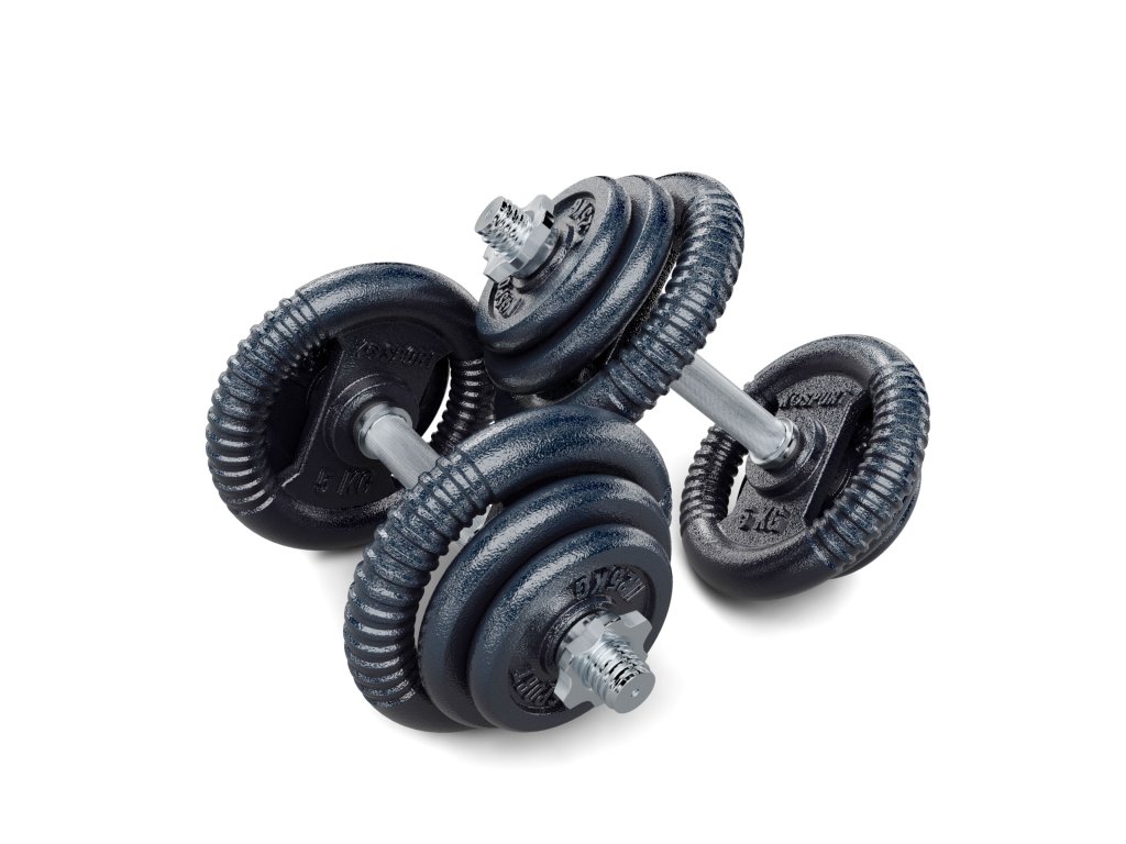 Komplet za hante 40 kg, obremenitev: 20 kg x 2, premer navoja: 27 mm, dolžina navoja: 120 mm, dolžina prijemala: 120 mm, premer odprtine za ploščo: 31 mm, največja nosilnost palice: 200 kg