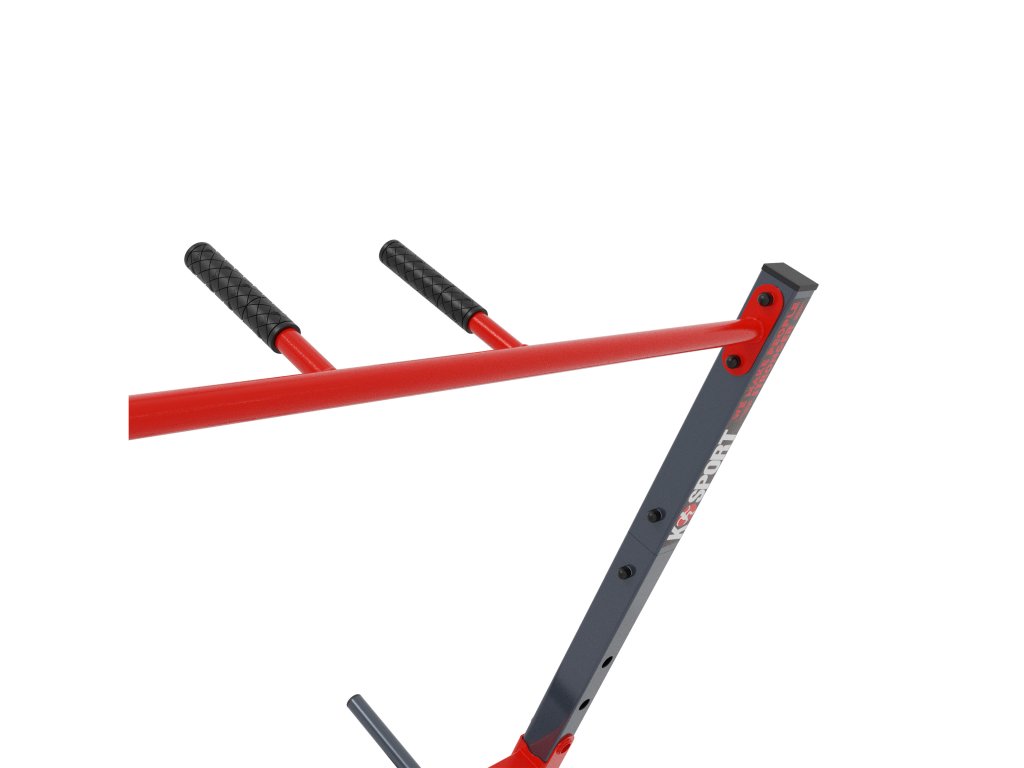 Model KSSL061 je opremljen s sistemom za pritrditev nastavkov, ki vam omogoča izvajanje številnih dodatnih vaj in s tem krepitev celotnega telesa. Vse to omogočajo vgrajena trapezna palica, vzporedne palice, zahvaljujoč dodatnim držalom celo vaje z utežmi.