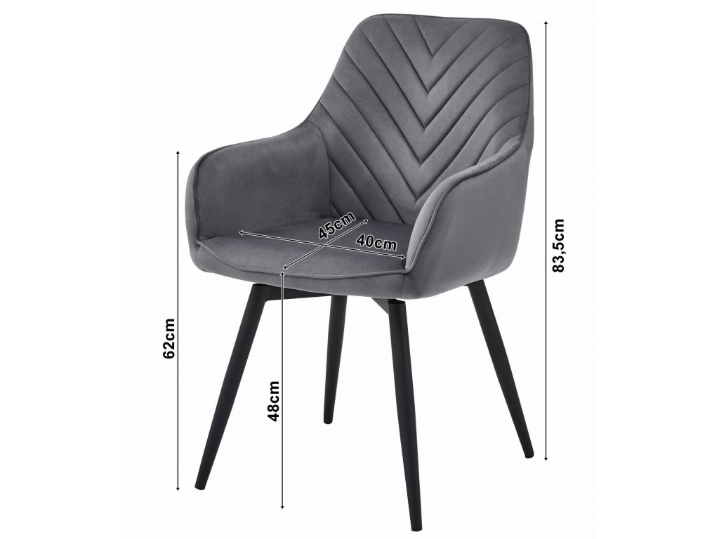 Skupna višina je 83,5 cm, širina 54 cm, globina 61 cm in višina sedeža 48 cm.