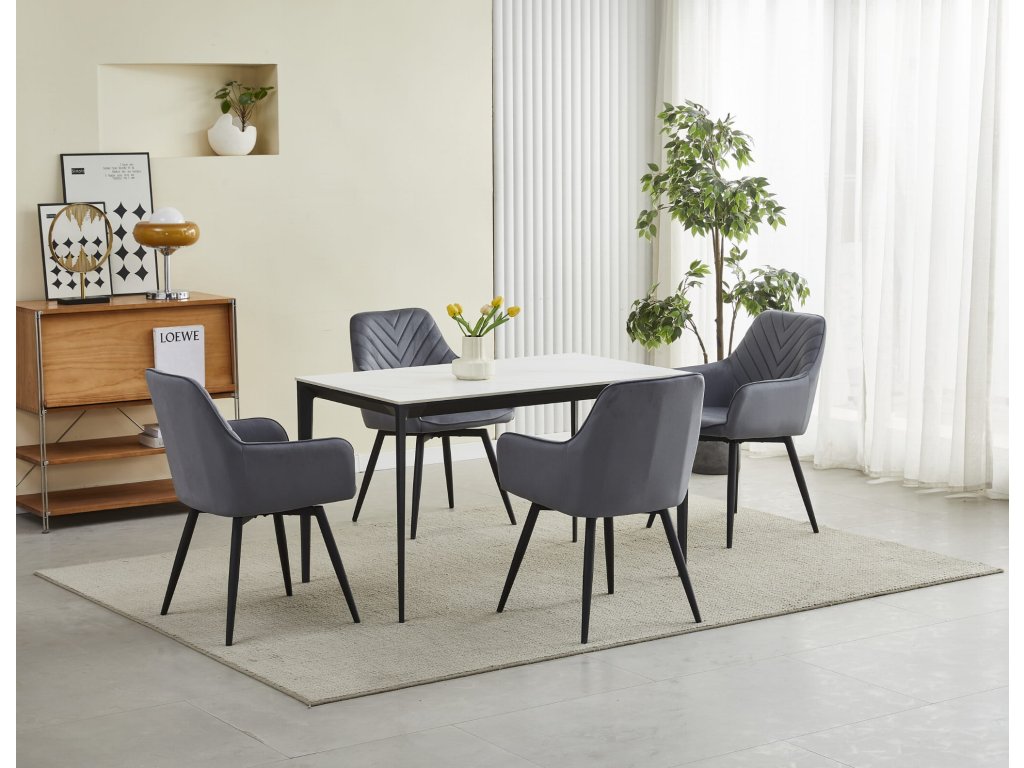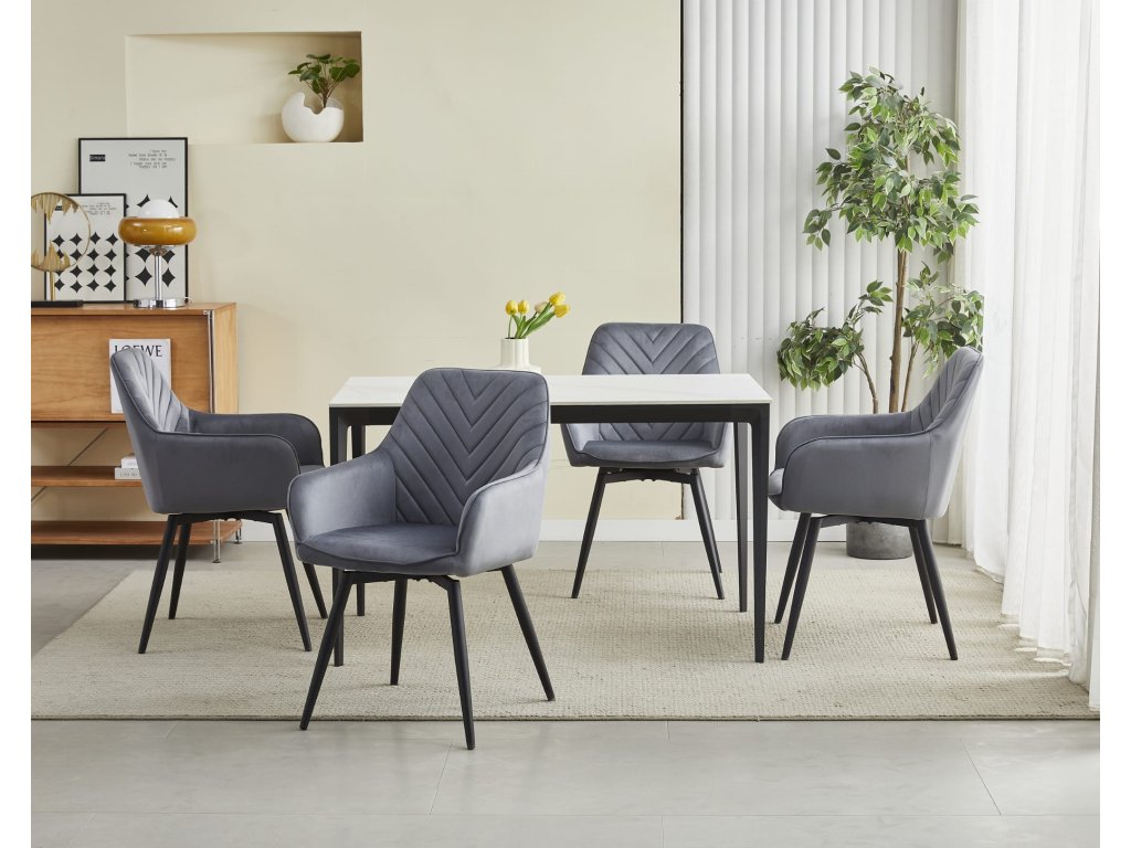 Iščete stol, ki združuje stil, udobje in funkcionalnost? Siv žametni stol Nana je idealen za moderne kuhinje, jedilnice ali delovne kotičke. Nežen lesk tkanine prostoru doda eleganten videz, vrtljiv sedež pa zagotavlja udobje tako pri obedovanju kot pri delu za računalnikom.