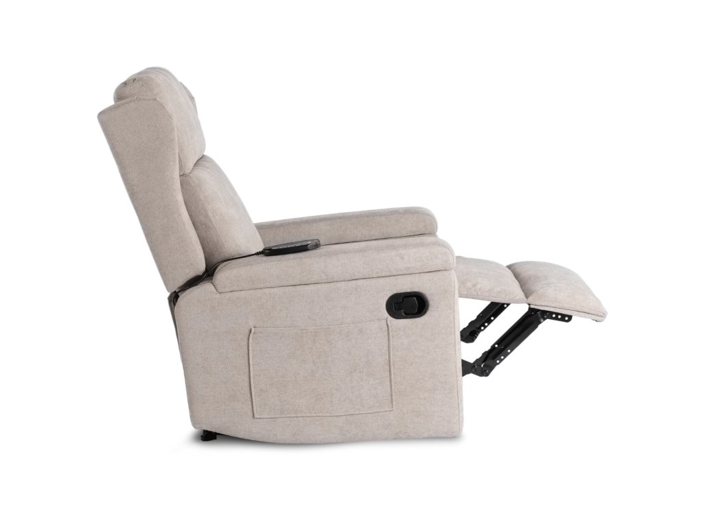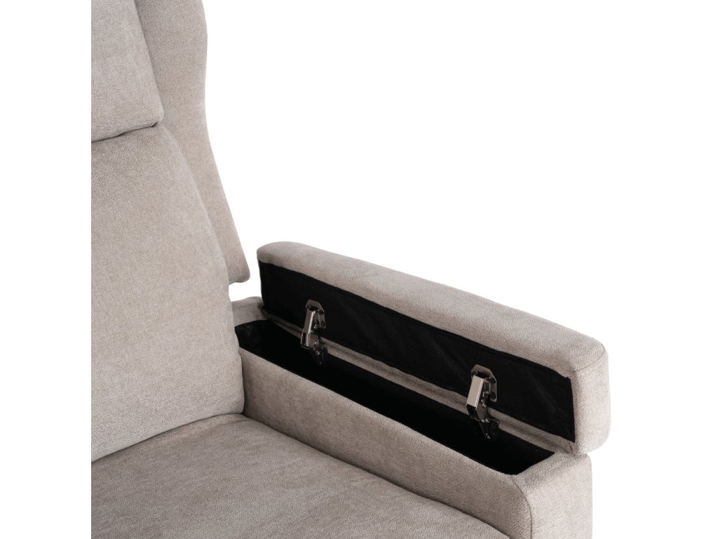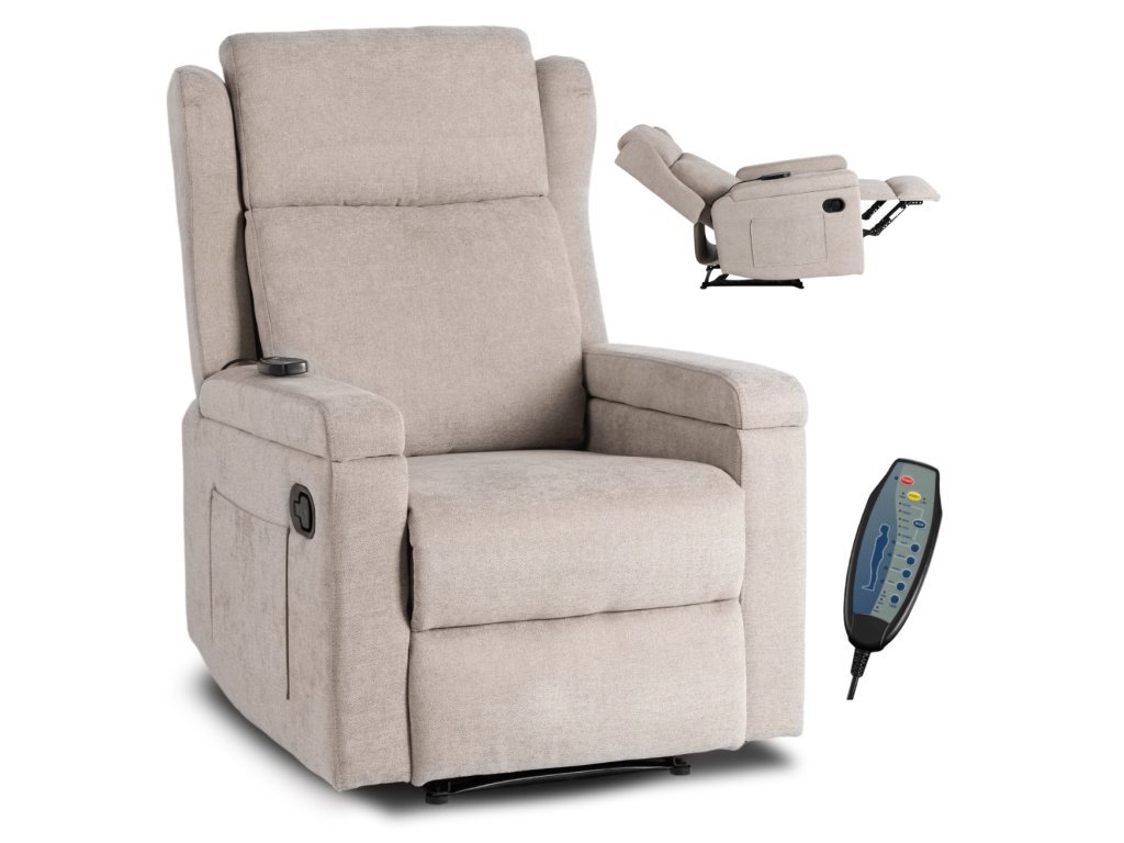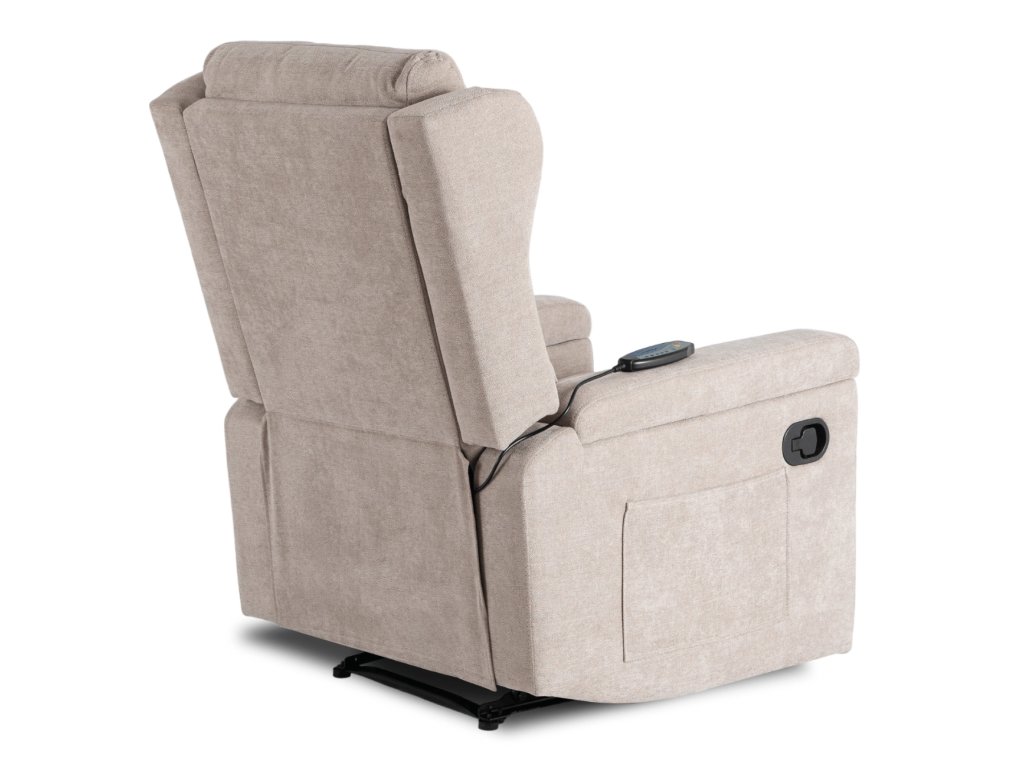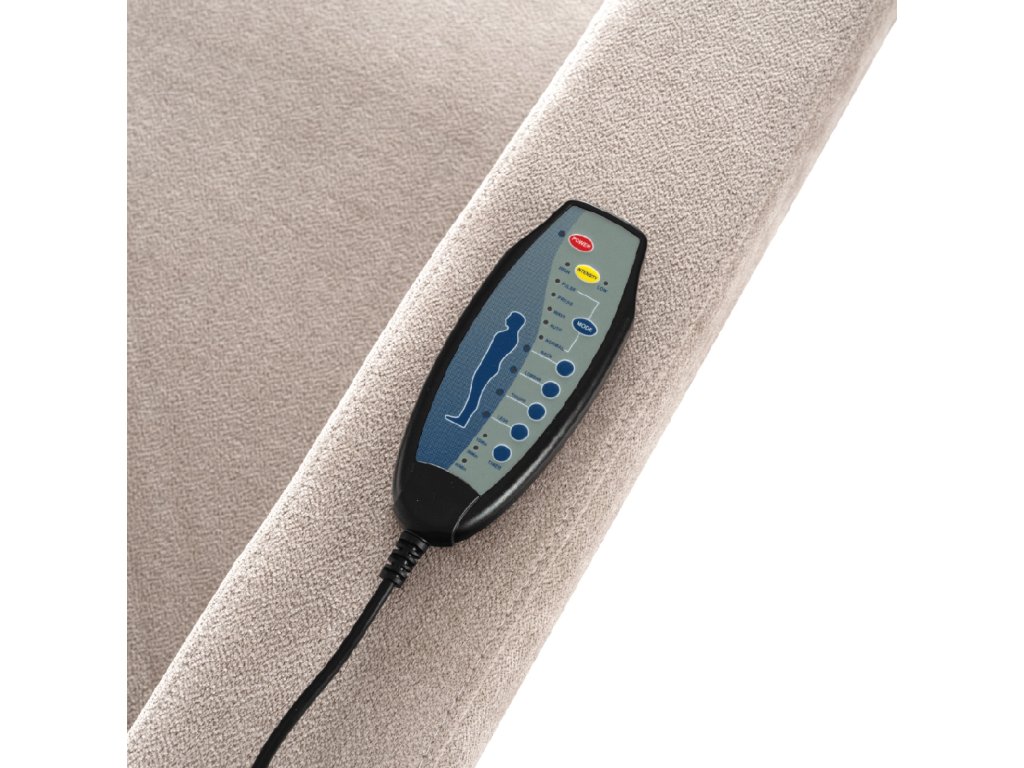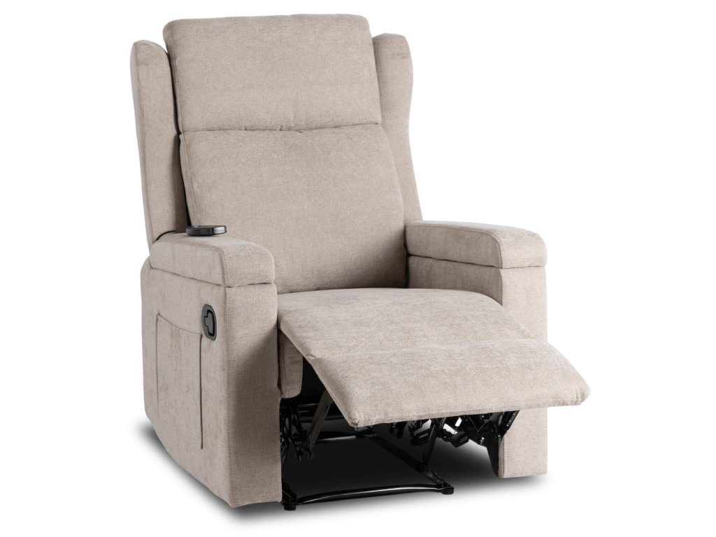 Z masažno funkcijo si lahko privoščite sprostitev nog, stegen, bokov in hrbtenice. Upravljanje poteka enostavno preko daljinskega upravljalnika, kjer lahko nastavite intenzivnost in čas masaže po potrebi. Praktični detajli, kot so odpirajoče se naslonjala z odlagalnim prostorom in nastavljiv naslon za noge, povečujejo udobje pri vsakokratni uporabi.