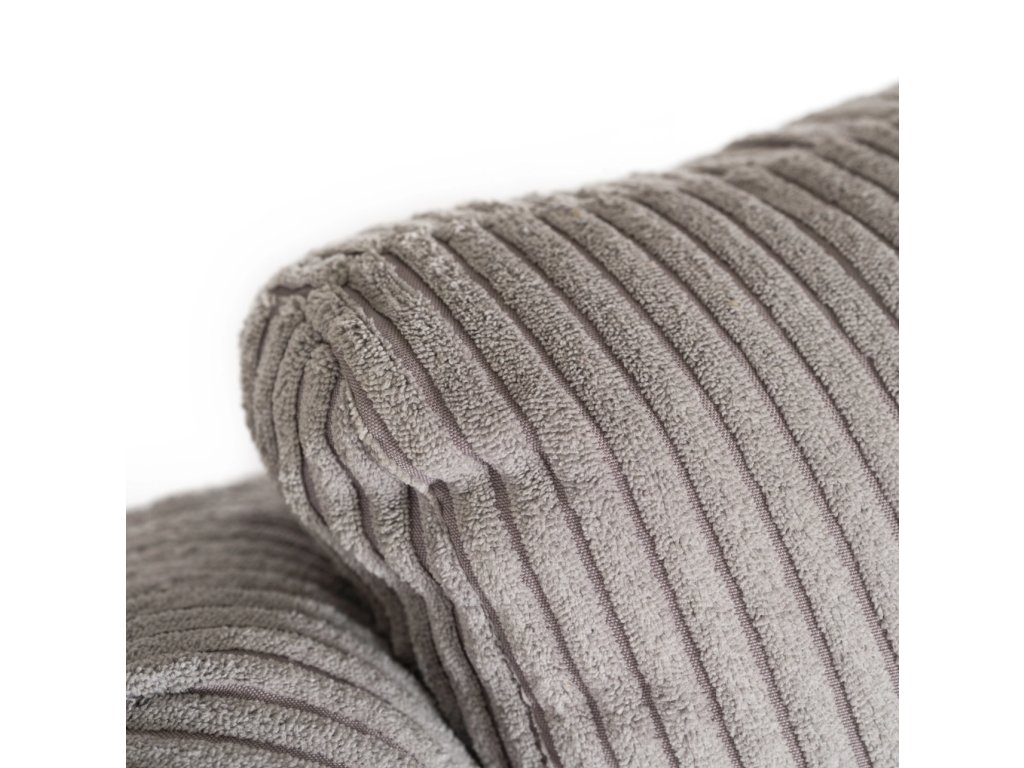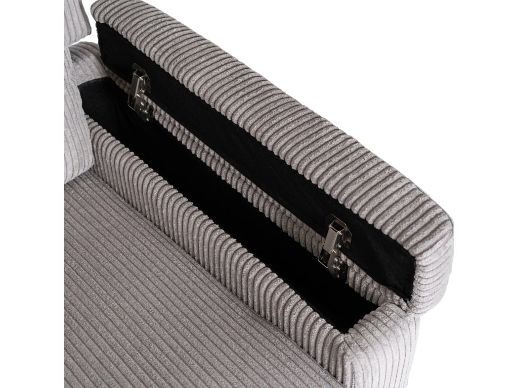 Tapeciranje iz finega menčestra s tipično rebrasto strukturo ni le prijetno na dotik, temveč tudi odporno na vsakodnevno uporabo. Siva barva prinaša sodobno eleganco in se zlahka prilega različnim notranjim slogom. Kovinska konstrukcija zagotavlja stabilnost in trdnost, kar omogoča varno in udobno uporabo.