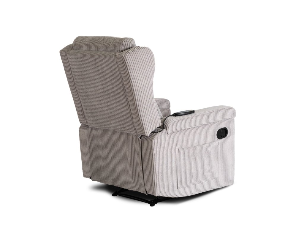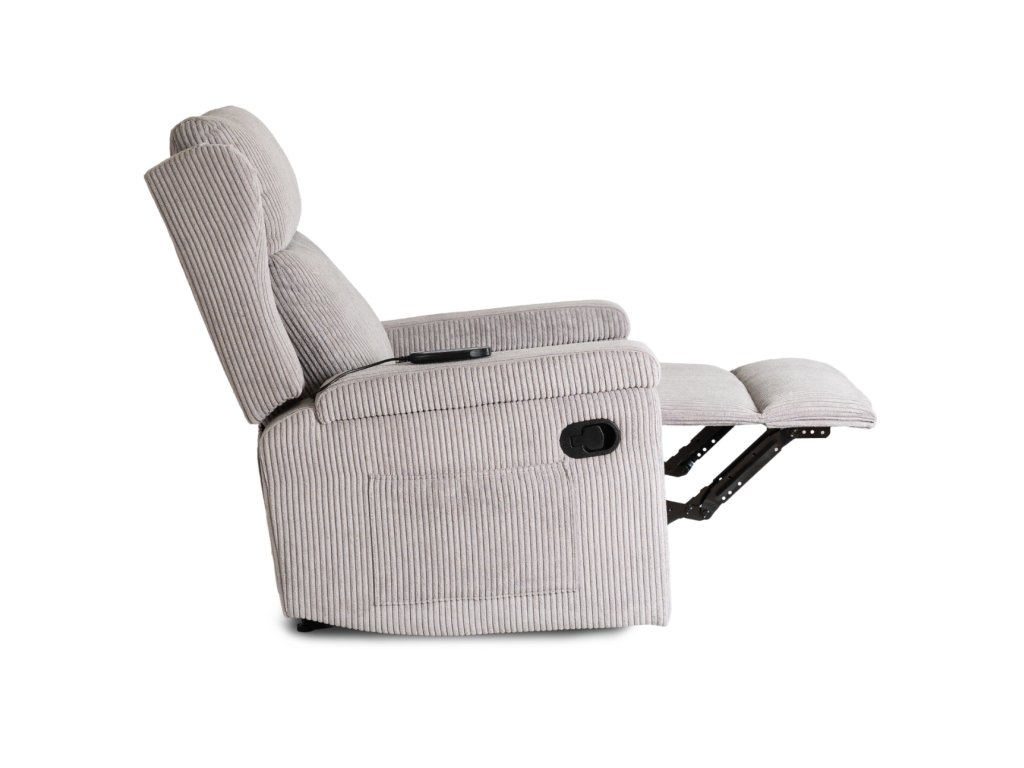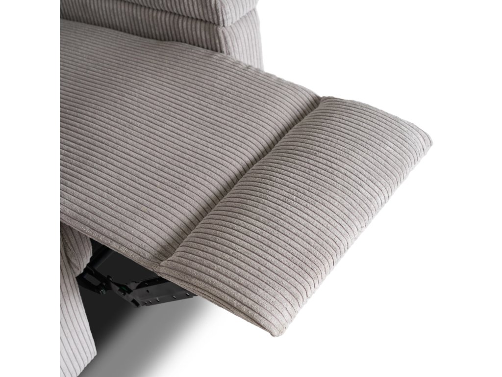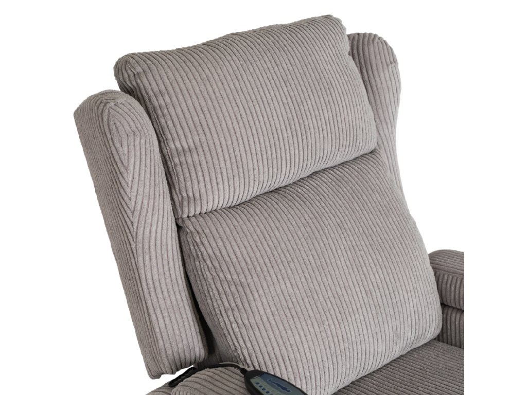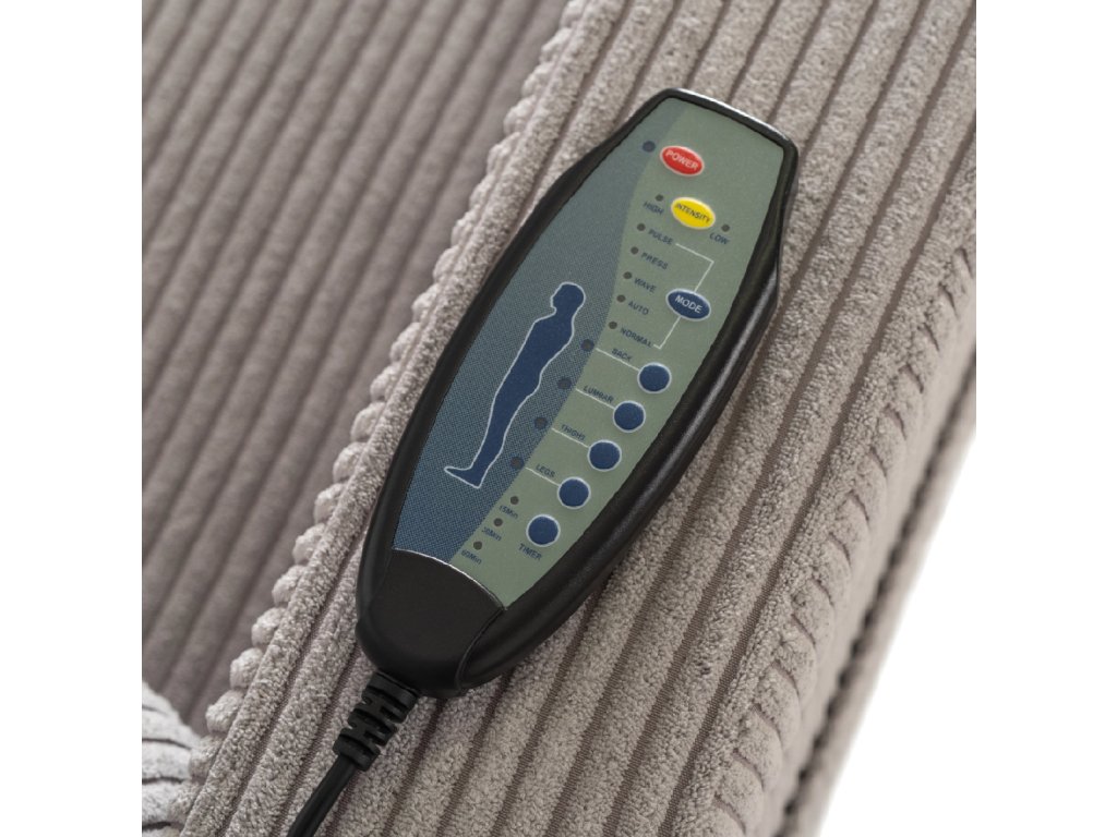Z masažno funkcijo si lahko privoščite sprostitev na področju nog, stegen, bokov in hrbta. Upravljanje poteka preprosto prek daljinskega upravljalnika, kjer izberete intenzivnost in čas masaže po potrebi. Praktični detajli, kot so odpiralni nasloni za roke z odlagalnim prostorom in nastavljiv naslon za noge, povečujejo udobje pri vsakokratni uporabi.