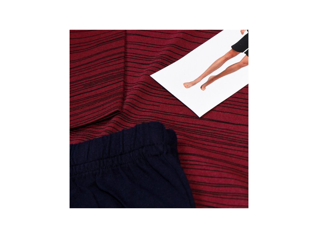 Komplet sestavljata majica s kratkimi rokavi z nežnim vzorcem in enobarvne kratke hlače z elastičnim pasom. Pižama ima sproščen kroj, ki zagotavlja udobje med spanjem in tudi med sproščanjem doma.