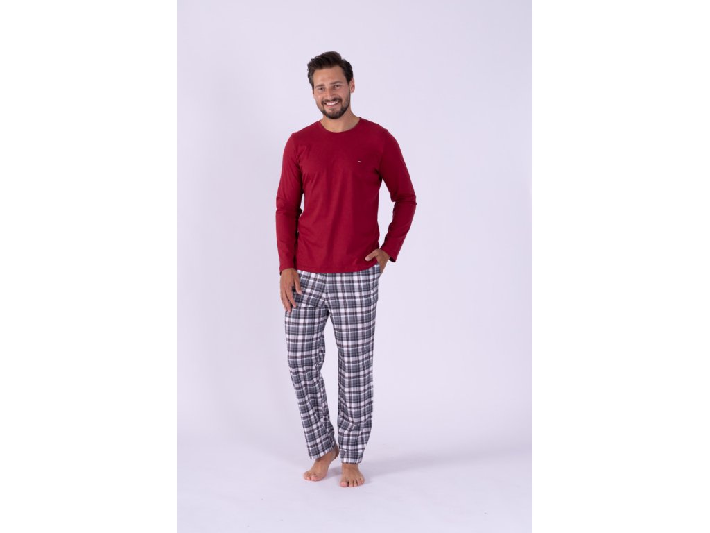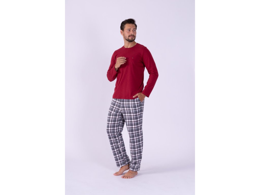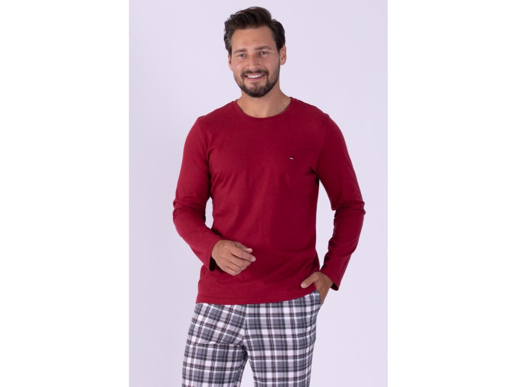 Moška pižama z dolgimi rokavi v bordni barvi Maxim