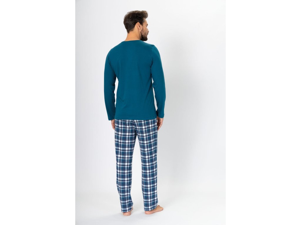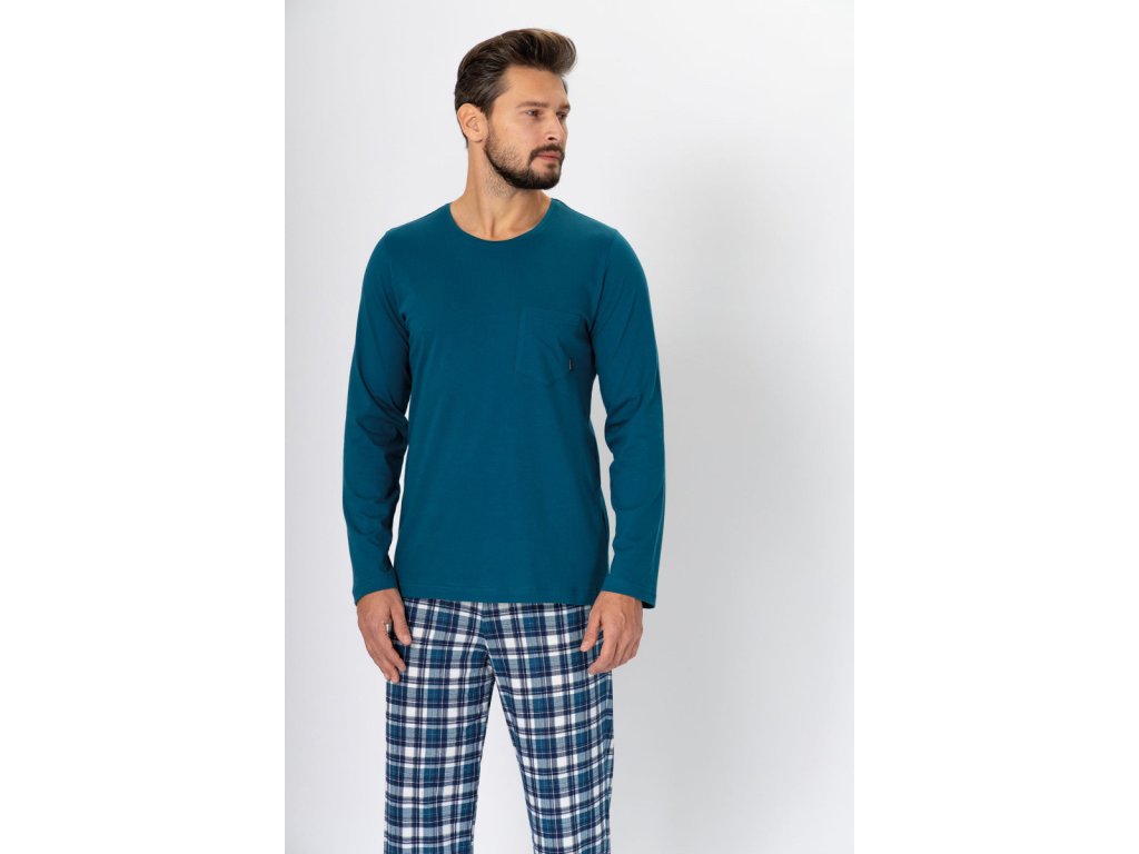Moška pižama z dolgimi rokavi v petrol modri barvi Leo