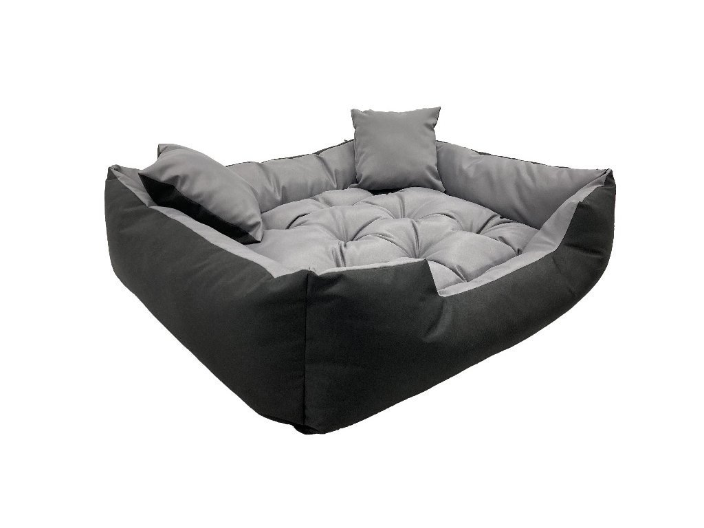 Postelja je dimenzij od 55 x 45 cm do 145 x 115 cm. Prešita postelja je debela približno 10 do 12 cm, zagotavlja zadostno udobje in udobje ter ima dve majhni blazini, ki psu služita tudi kot igrača.