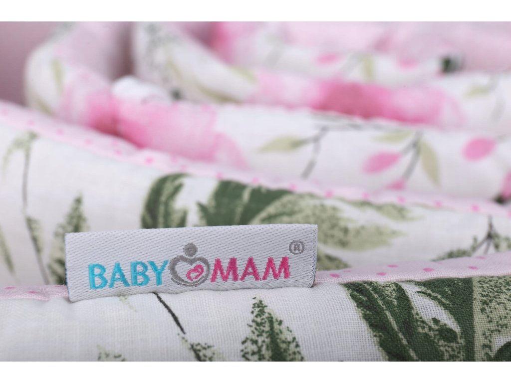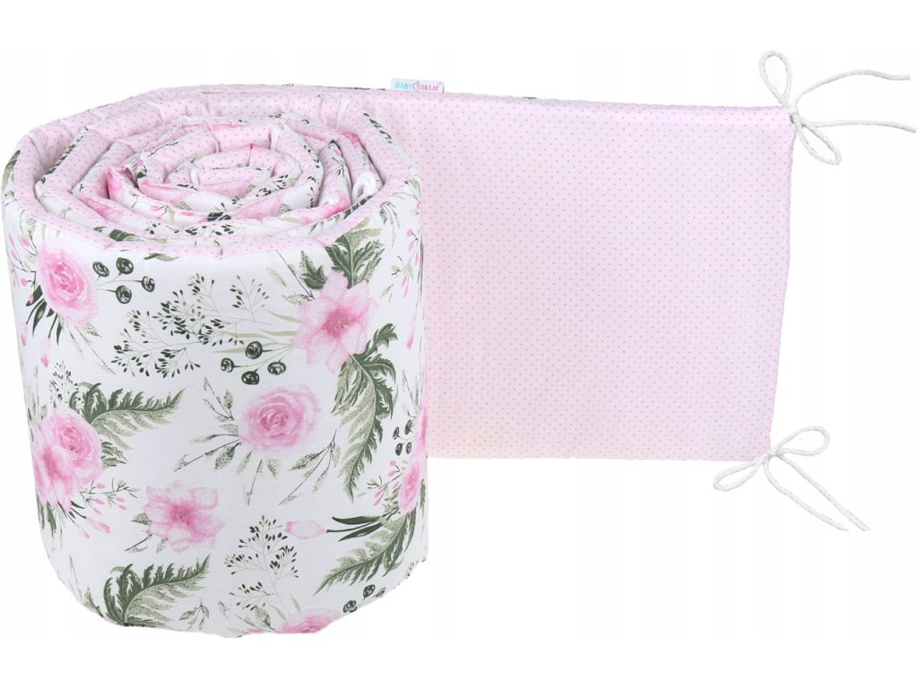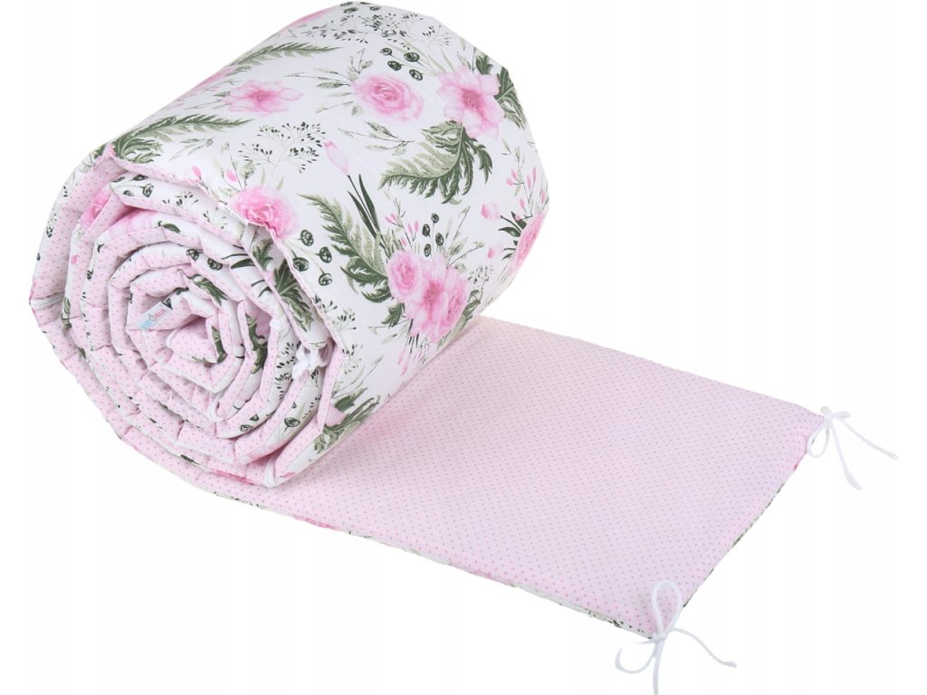 Obroba za posteljico - zaščita je polnjena z visoko puhastim silikonskim polnilom, ki ščiti vašega otroka pred poškodbami. Ima vezi (vrvice), s katerimi jo lahko varno pritrdite na posteljico.