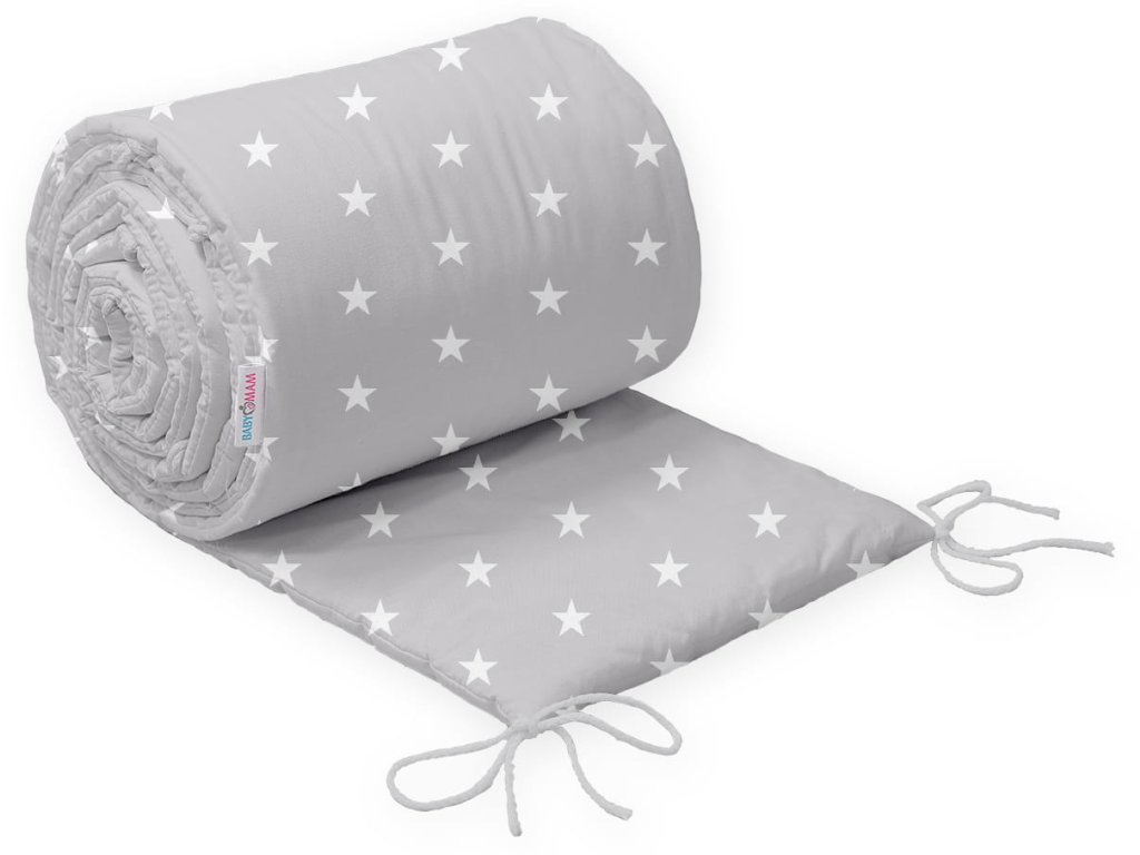Obroba za posteljico - zaščita je polnjena z visoko puhastim silikonskim polnilom, ki ščiti vašega otroka pred poškodbami. Ima vezi (vrvice), s katerimi jo lahko varno pritrdite na posteljico.