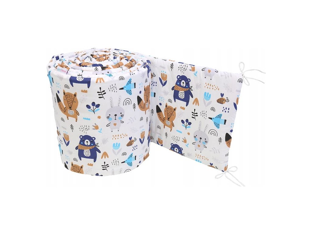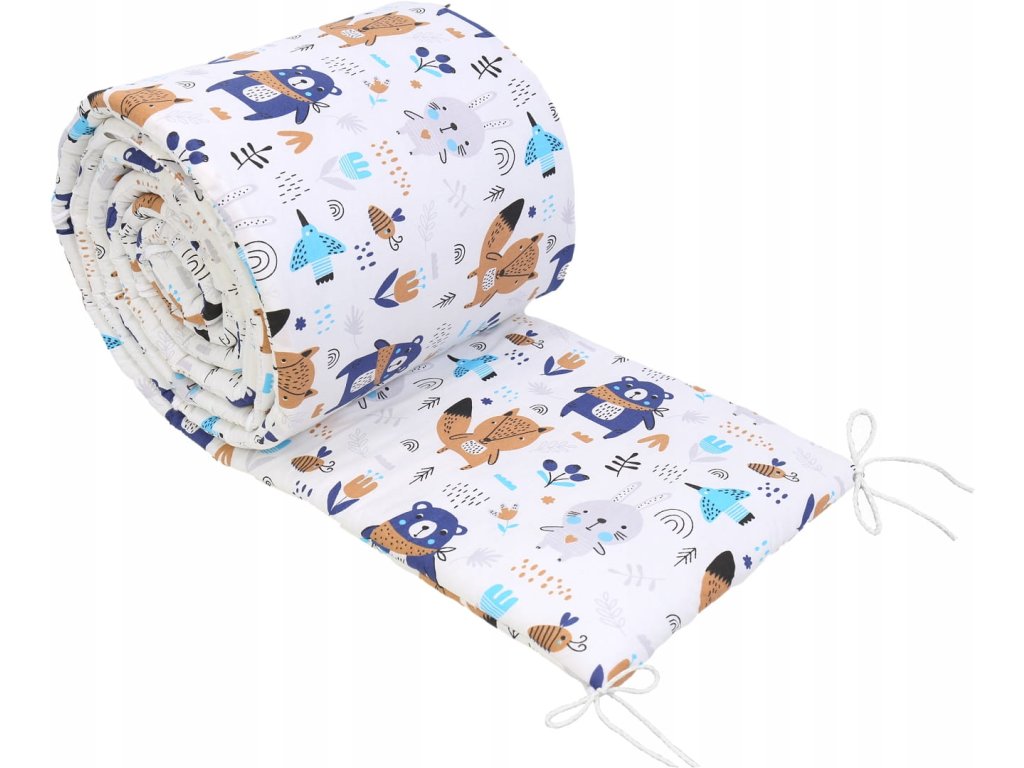 Obroba za posteljico - zaščita je polnjena z visoko puhastim silikonskim polnilom, ki ščiti vašega otroka pred poškodbami. Ima vezi (vrvice), s katerimi jo lahko varno pritrdite na posteljico.