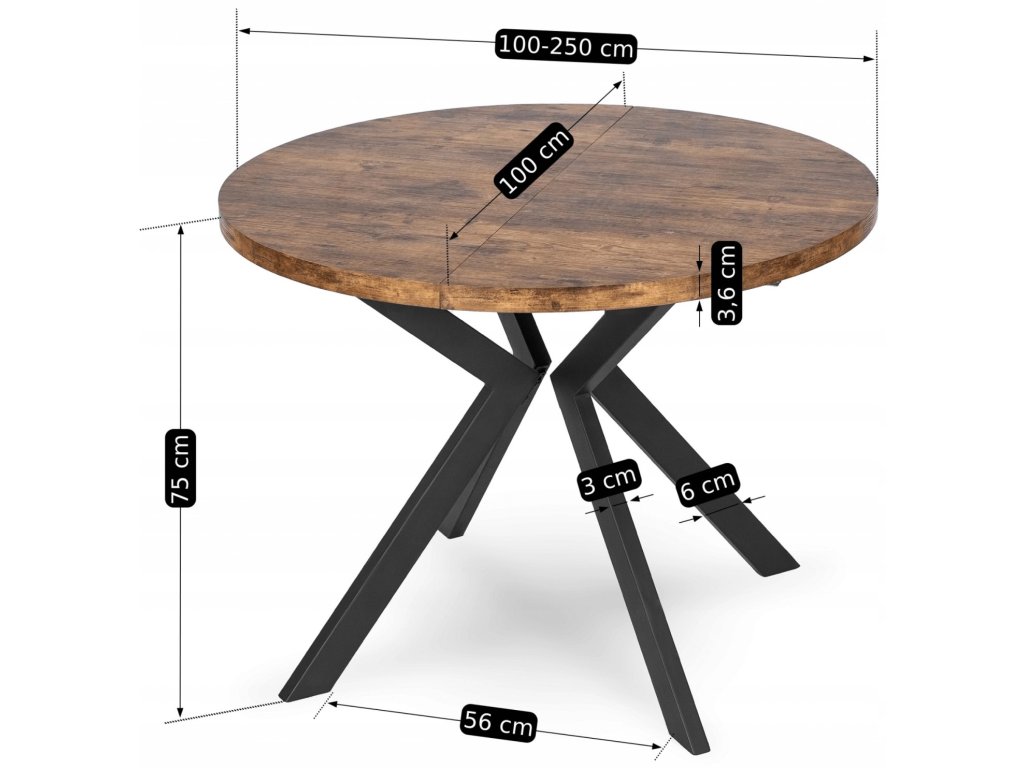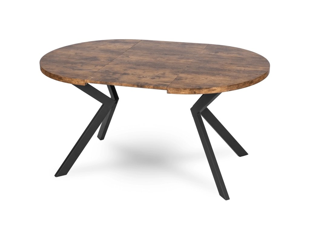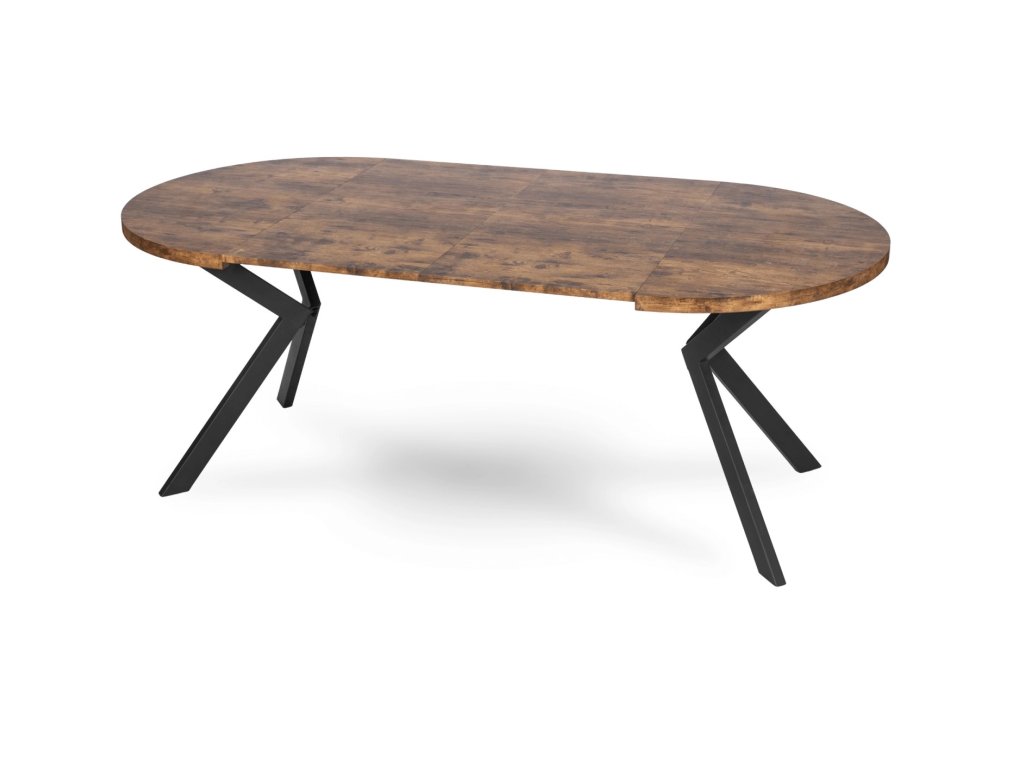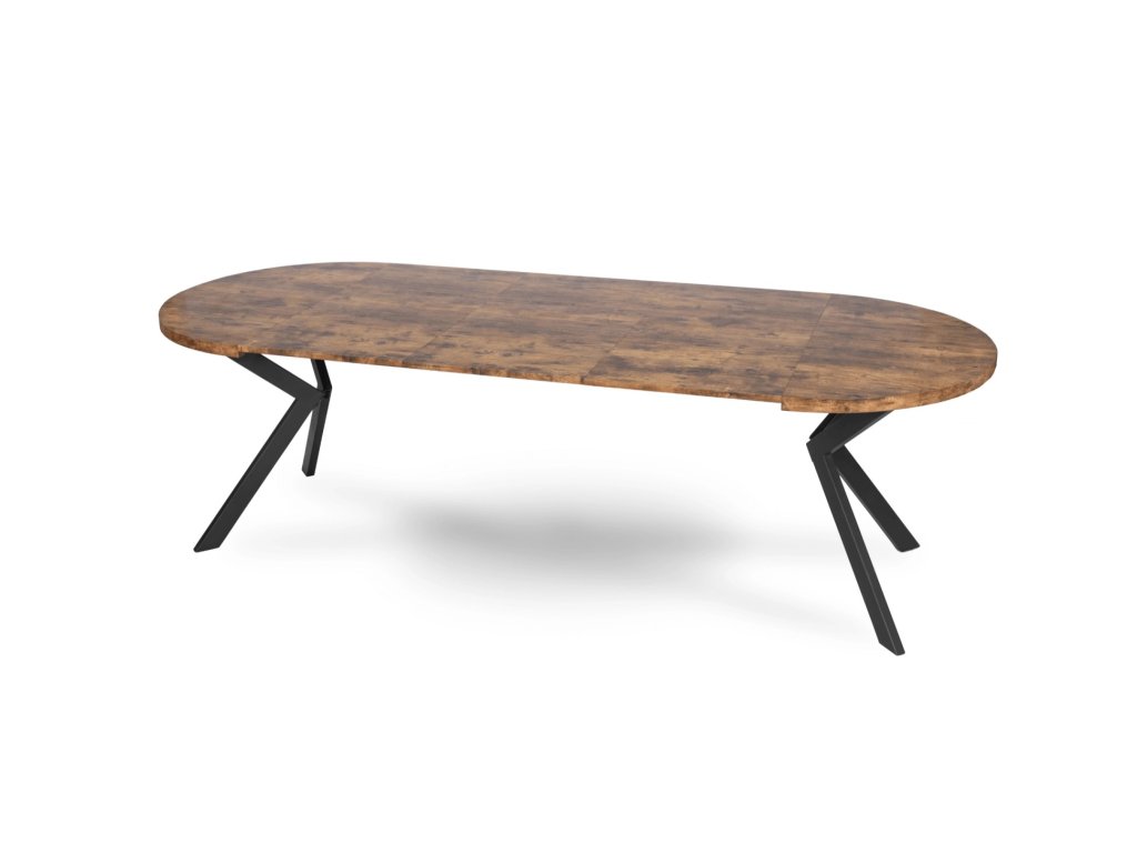 Okrogla raztegljiva miza LUKAS, rustikalni hrast, material: MDF plošča, konstrukcijski material: kovina, barva konstrukcije: črna, barva mizne plošče: rustikalni hrast, mere: 75 x 100 x 250 cm