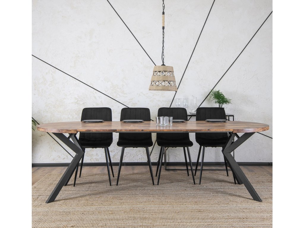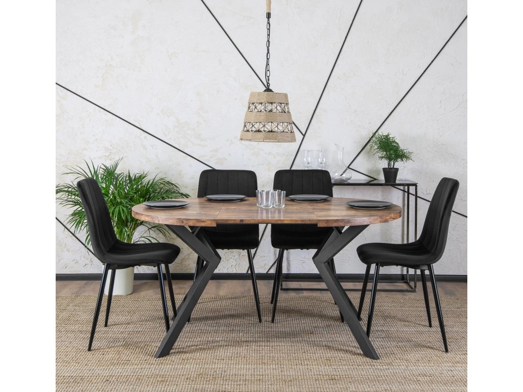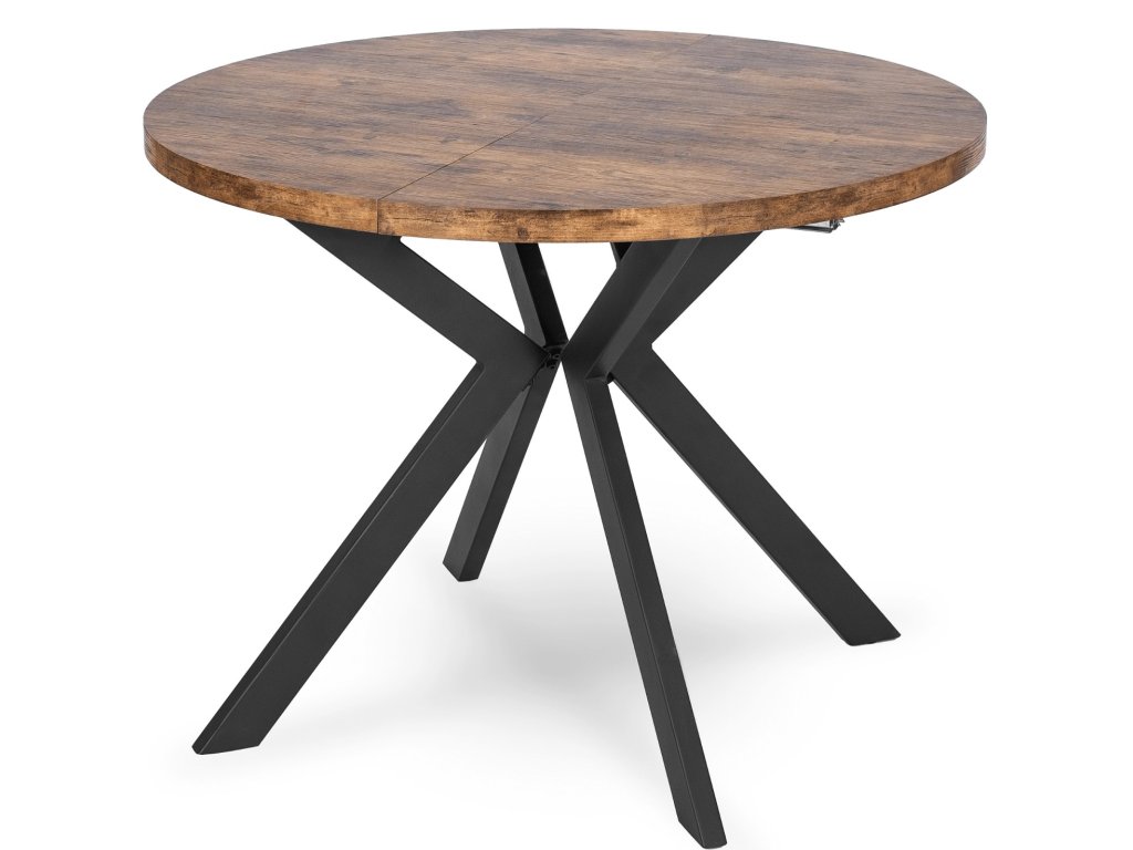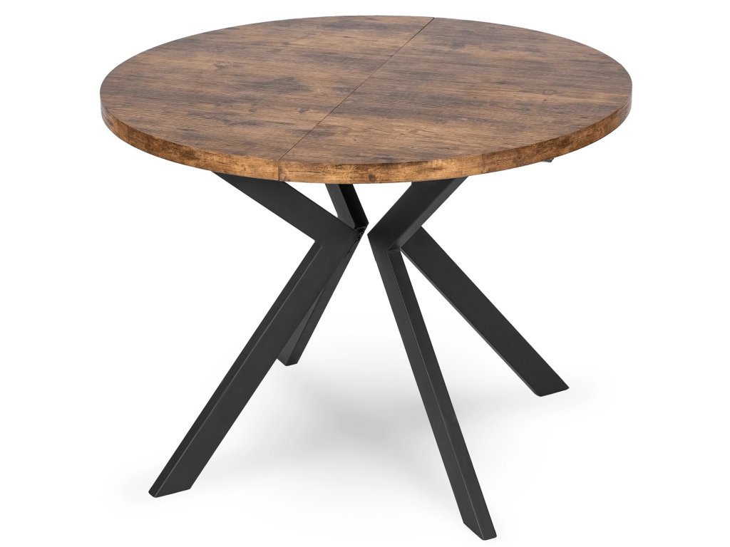 Okrogla raztegljiva miza LUKAS, rustikalni hrast, material: MDF plošča, konstrukcijski material: kovina, barva konstrukcije: črna, barva mizne plošče: rustikalni hrast, mere: 75 x 100 x 250 cm
