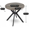 Miza je okrogla, kar ji daje prijeten vizualni videz in omogoča njeno univerzalno uporabo. Okrogla oblika je idealna za ustvarjanje prijetnega in prijateljskega prostora za obedovanje ali srečanja. Poleg tega je miza raztegljiva, v osnovni konfiguraciji ima premer 80 cm, po raztezanju pa doseže dolžino do 160 cm, kar omogoča udobno sedenje več oseb, kar boste še posebej cenili pri družinskih praznovanjih ali družabnih dogodkih.