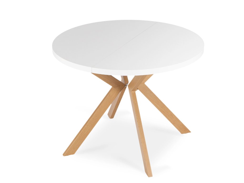 Okrogla raztegljiva miza Lukas bela 100 – 250 cm skandinavski hrast