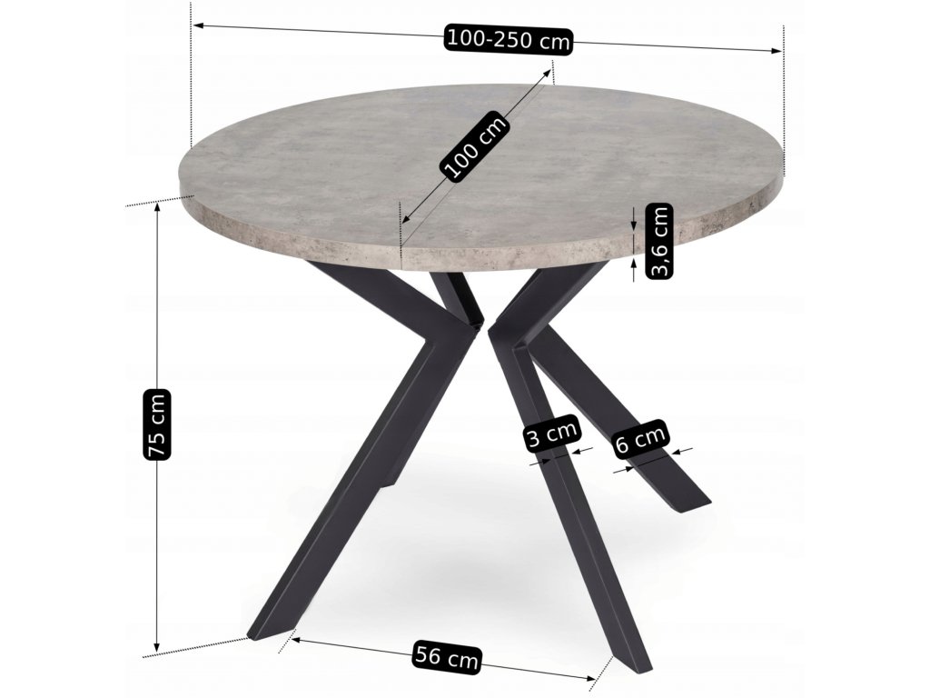 Okrogla zložljiva miza 100 - 250 cm Lukas beton 2/2