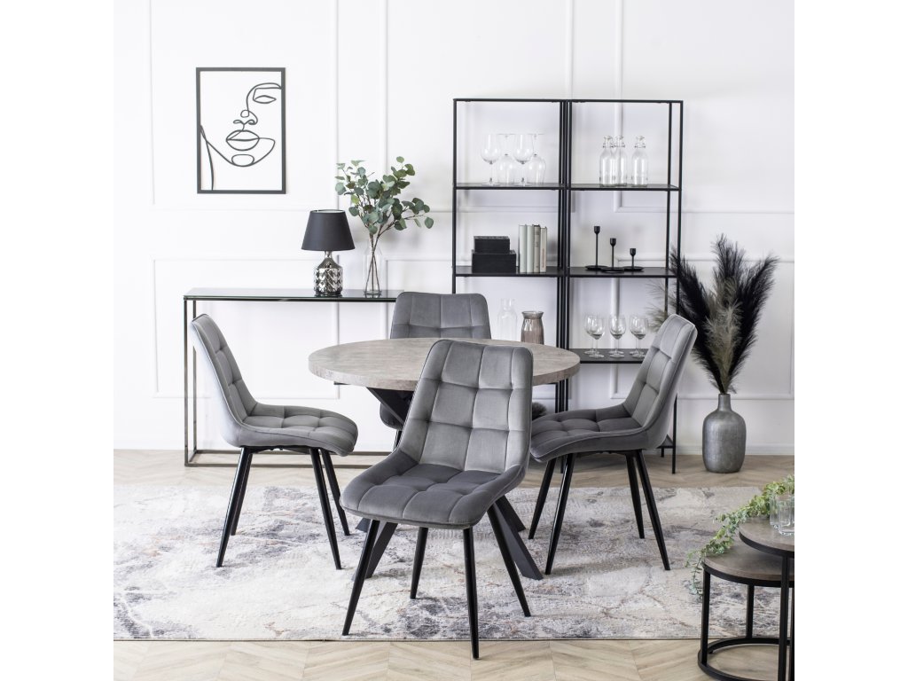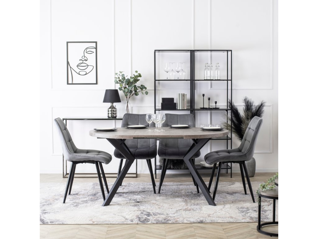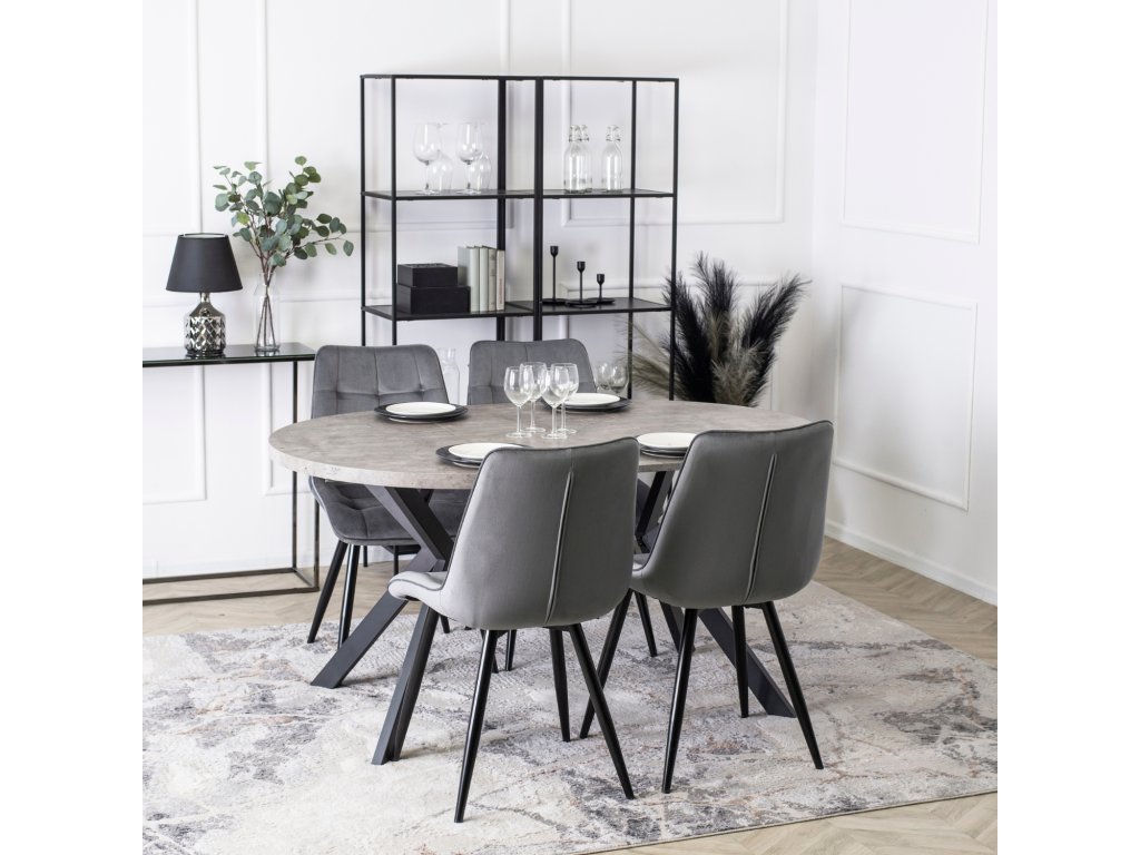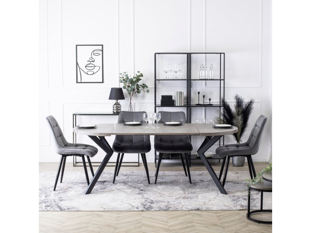 Okrogla zložljiva miza LUKAS, črni hrast, material: barva konstrukcije: črna, barva zgornjega dela: beton, dimenzije: 75 x 100 x 250 cm.
