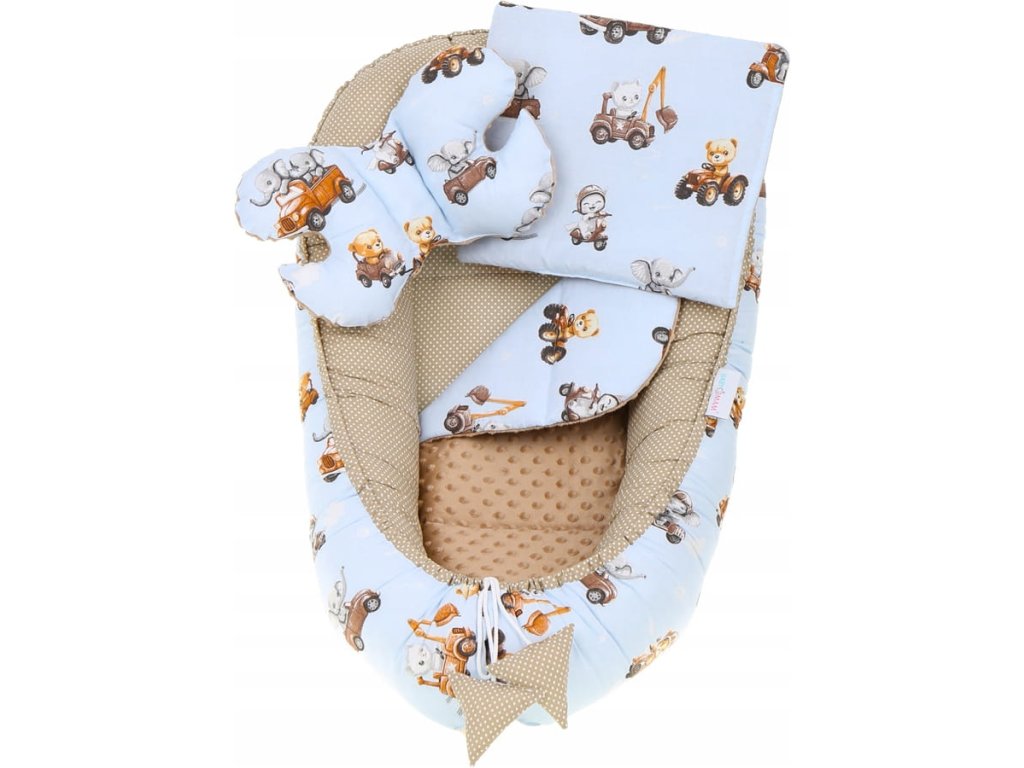 Komplet je popolna rešitev za miren spanec in udobje vašega otroka, saj ustvarja varen in udoben prostor, ki simulira občutek varnosti. Blazina proti udarcem zagotavlja nežno podporo glavici, zmanjšuje tveganje udarcev in zagotavlja optimalne pogoje za zdrav razvoj. Komplet dopolnjujejo odeja, vzmetnica, ploski vzglavnik, previjalka in praktična bombažna prevleka, ki zagotavljajo, da ima vaš malček vse, kar potrebuje za spanje.
