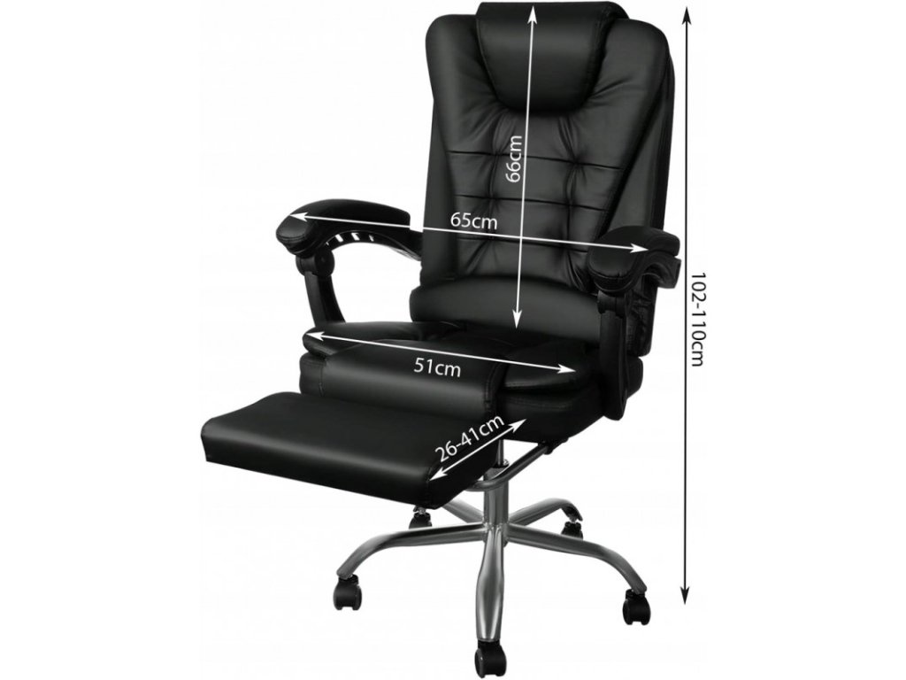 Stol je opremljen s funkcijo prilagodljivega naslona, ki omogoča individualno prilagoditev kota nagiba glede na potrebe uporabnika. Raztegljiv naslon za noge, skrit pod sedežem, zagotavlja dodatno udobje in izboljšuje prekrvavitev nog.
