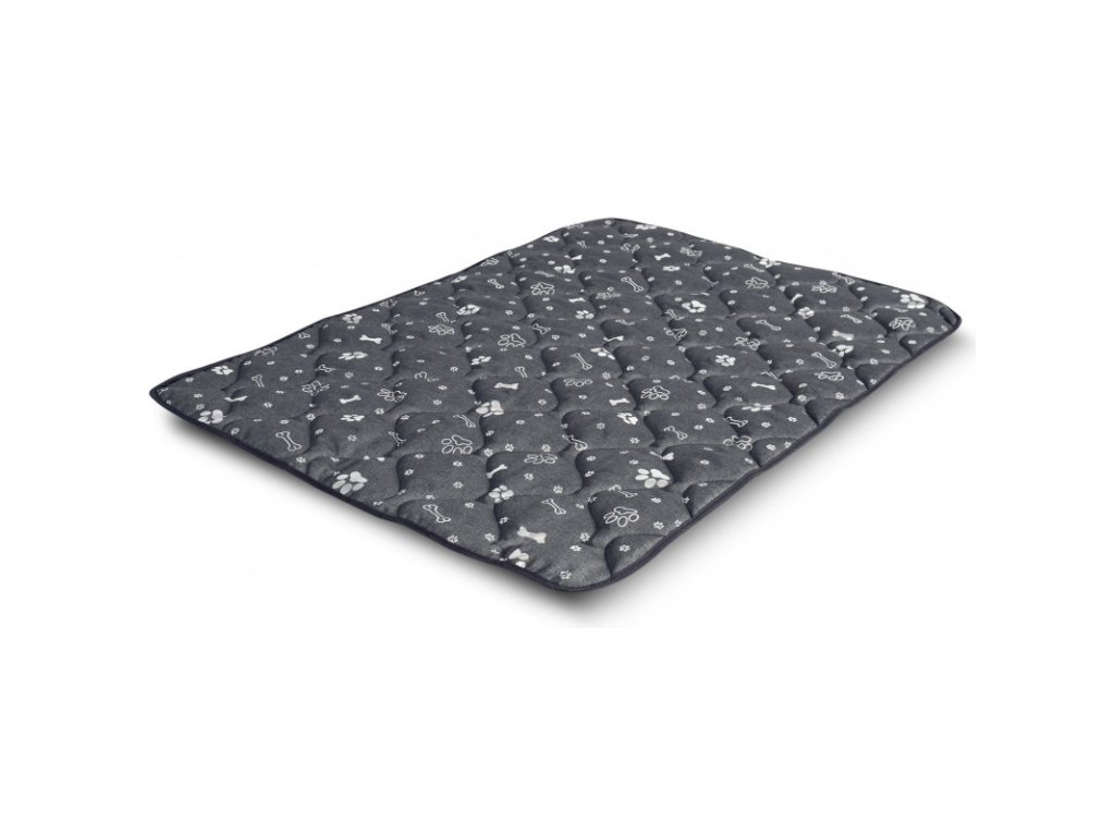 Podloga je izdelana iz vodoodporne tkanine Codura s potiskom tačk. Material je odporen proti umazaniji in enostaven za čiščenje. Ne vsebuje zdravju škodljivih snovi ali težkih kovin, zato zagotavlja varnost in zdravje vašega ljubljenčka. Podloga ima silikonsko polnilo, ki je antialergijsko in izdelano iz ekoloških materialov. Izdelana je iz mehkih in vzdržljivih tkanin, dno je odporno proti obrabi, stranice in spodnji del pa so podloženi z mehkim flisom. Zgornji del je iz debele, vodoodporne tkanine, ki zagotavlja dolgo življenjsko dobo in zaščito pred vlago in praskami.