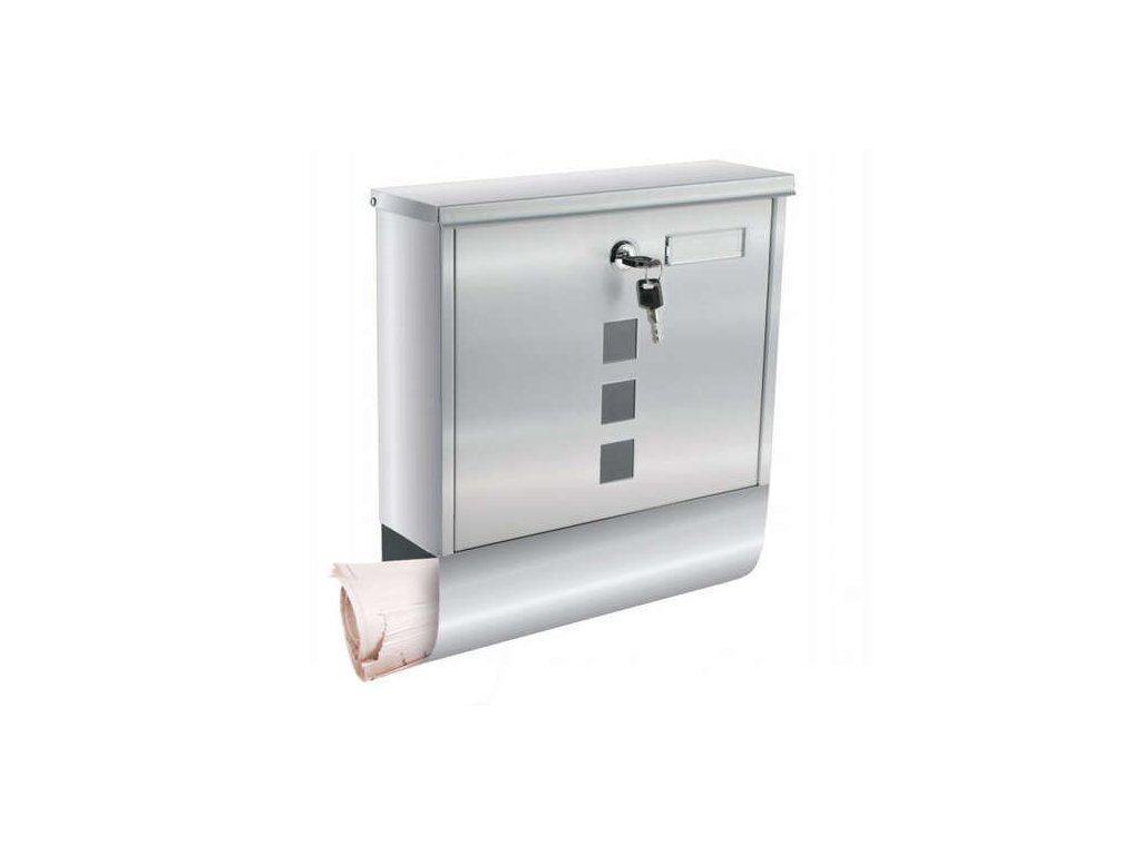 Spodnji del vsebuje tubus za časopise in letake, kar omogoča ločeno shranjevanje pošte od tiskovin. Vrata poštne skrinjice so zaklepna, v paketu pa sta priložena dva ključa, kar omogoča enostaven dostop več osebam. Celoten dizajn deluje moderno in hkrati brezčasno.