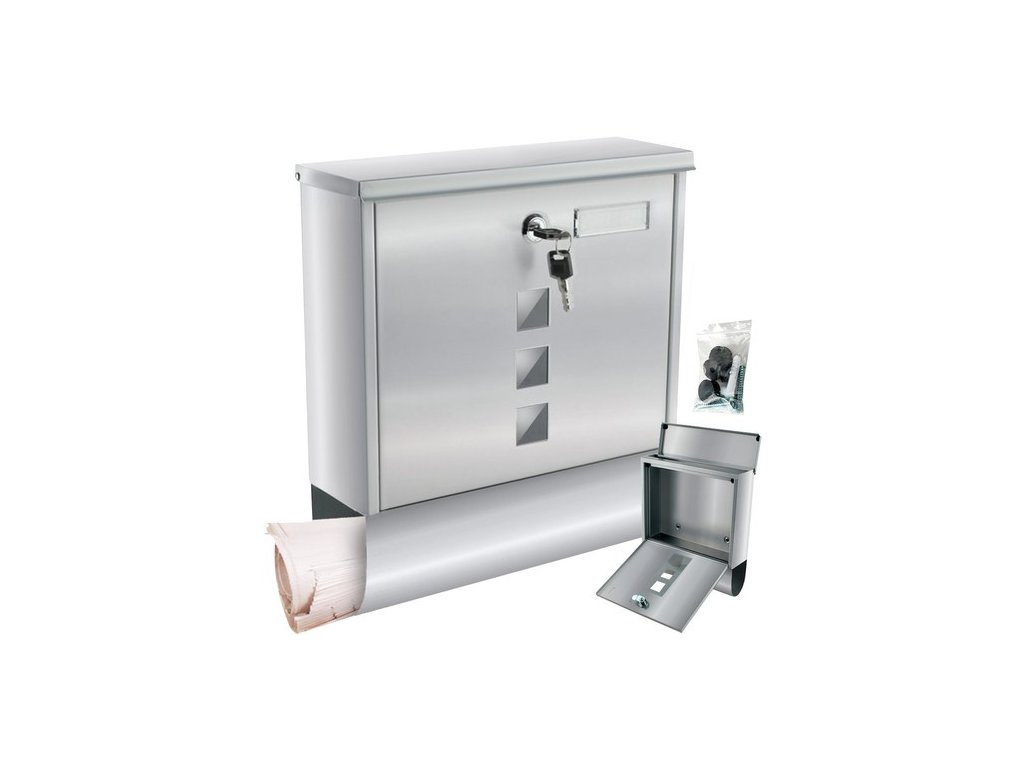 Vmetovalna odprtina ima praktičen pokrov, ki preprečuje vdor vode. V poštno skrinjico udobno spravite pošiljke formata A4, pisma in manjše pakete. Notranjost je zasnovana tako, da pošta ostane nepoškodovana tudi med močnim dežjem ali snegom.