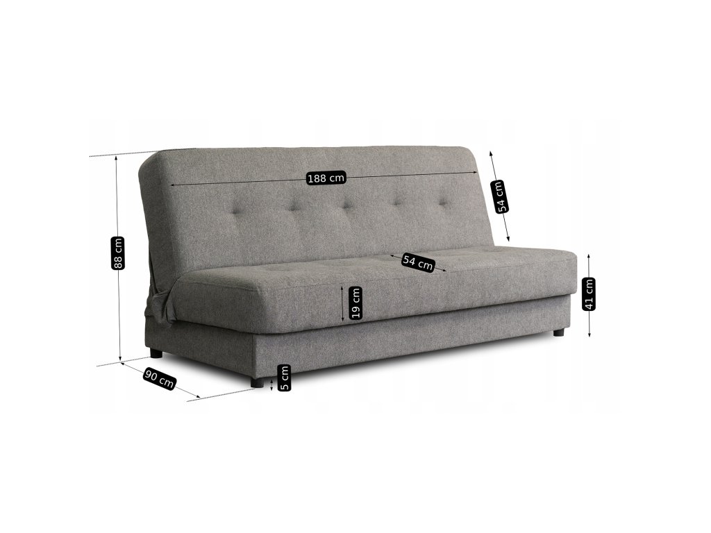 Raztegljiv kavč Aruba dvojni, barva: siva, material: polaris, plastika, polnilo sedeža in naslona: vzmeti bonell, oblazinjena pena, največja obremenitev: 300 kg, dimenzije kavča (v x š x g): 88 x 188 x 90 cm, dimenzije postelje: 118 x 188 cm