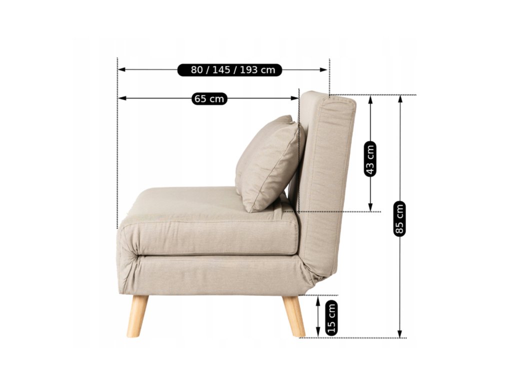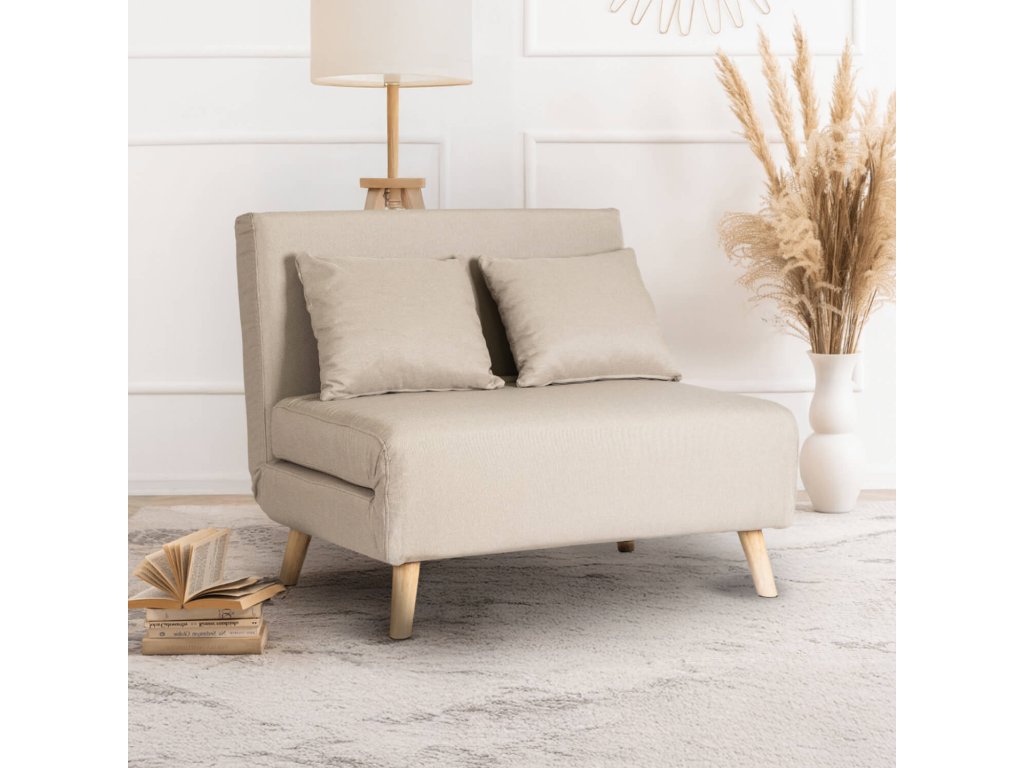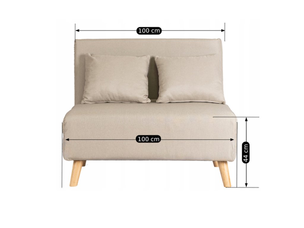 Raztegljiv fotelj Marry 2 bež, število sedežev: 2, višina: 85 cm, širina: 100 cm, globina: 80 cm, barva: bež, material: tkanina, največja obremenitev: 150 kg, nasloni za roke: ne, teža: 29 kg