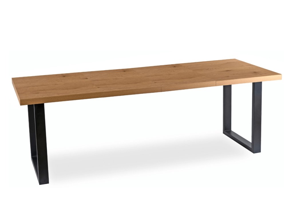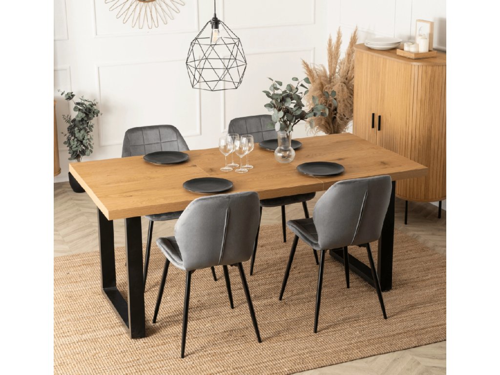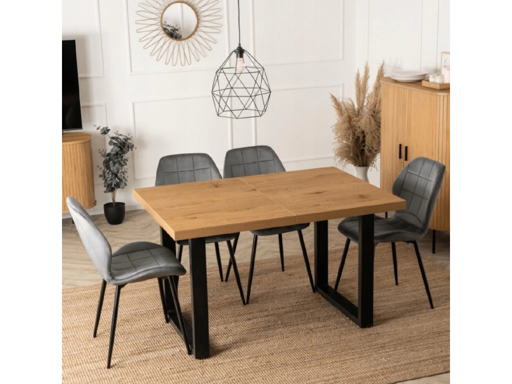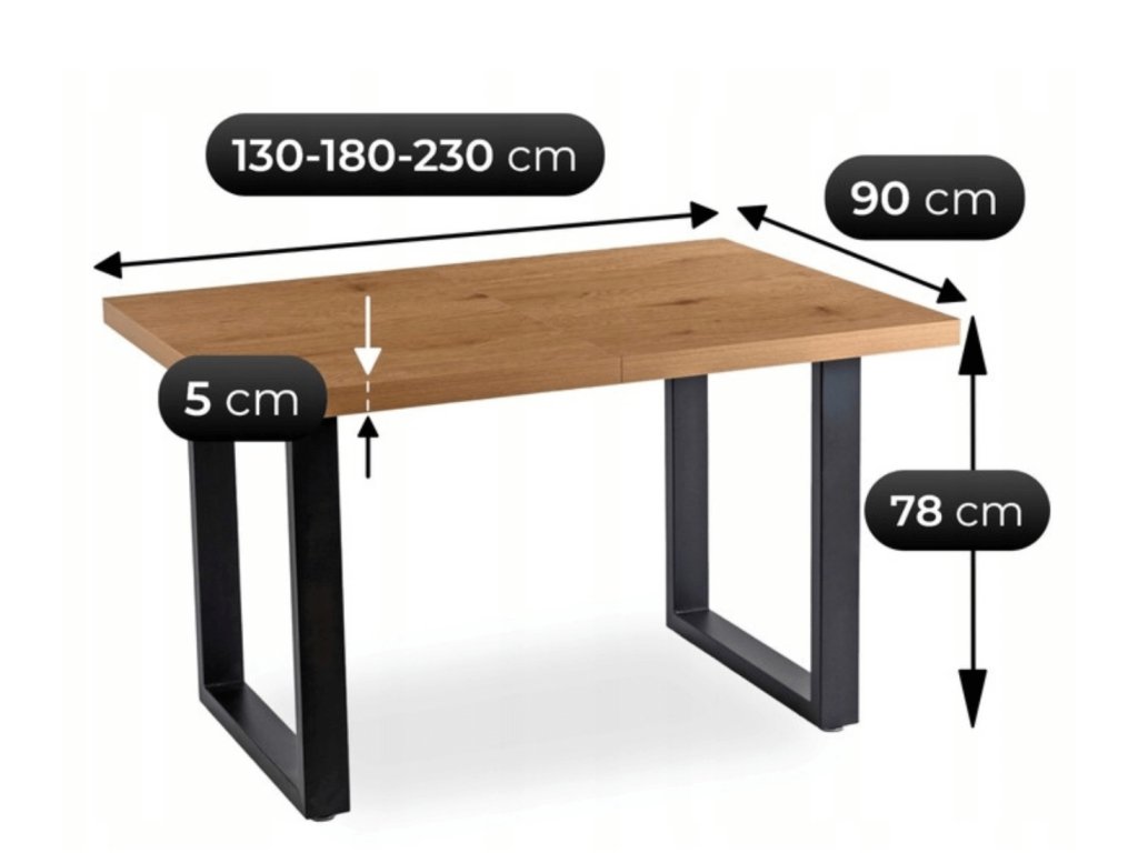 Plošča mize je debela 5 cm in je izdelana iz laminirane MDF plošče z vzorcem zlati hrast. Je odporna proti praskam in udarcem. Miza ima raztegljivo funkcijo, razteza se zelo enostavno – preprosto raztegnite mizo, vstavite dodatno ploščo in takoj dobite mizo večjo za 80 cm.