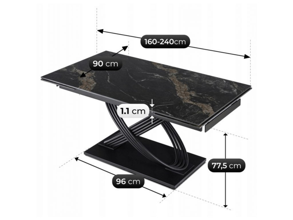 Raztegljiva miza Ibiza 160 - 240 cm črni marmor