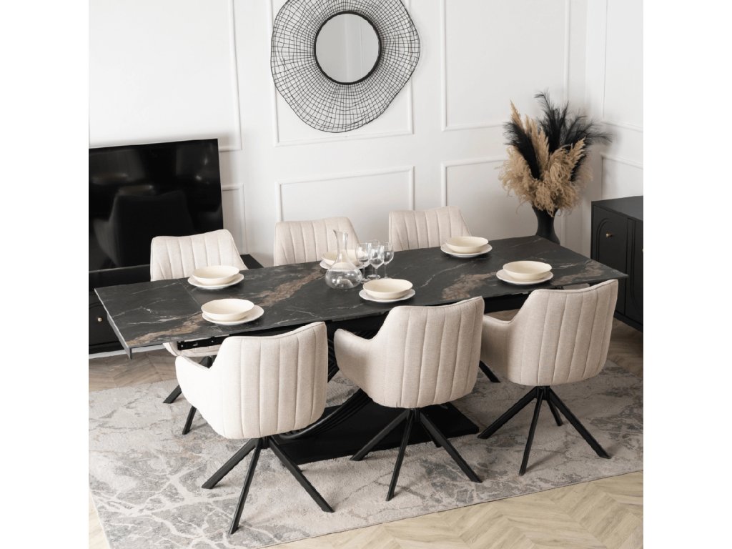 Iščete mizo, ki se prilagodi vašim potrebam in hkrati doda notranjosti luksuzen videz? Raztegljiva miza Ibiza v črni marmorni izvedbi je rešitev, ki združuje praktičnost, odpornost in eleganco. Primerna je ne le za vsakodnevno obedovanje, temveč tudi za slovesne priložnosti in družabna srečanja.