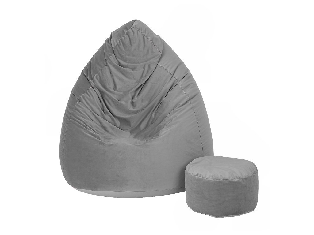 Sedežna vreča XXXL z naslonom za noge, barva: svetlo siva, višina: 120 cm, širina: 100 cm, dolžina: 75 cm, stolček: višina: 20 cm, premer: 40 cm, polnilo: polistiren, material: velur