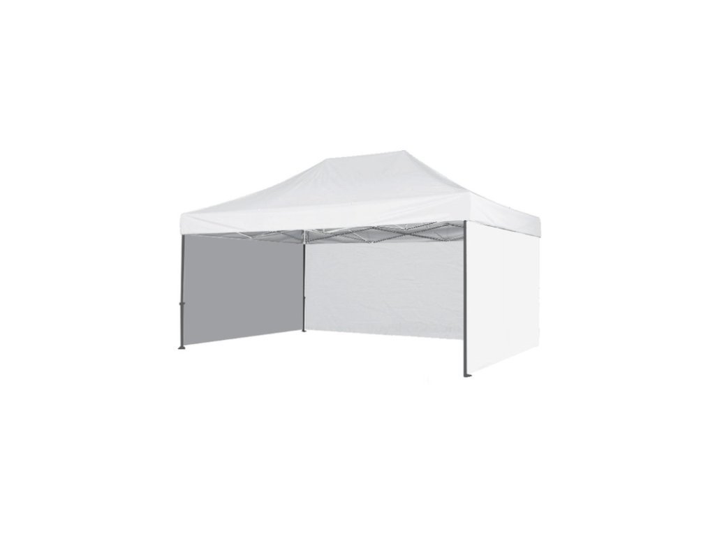 Škarjasti profi šotor 3 x 4,5 m bela, teža 35 kg, nastavljiva višina 190 až 220 cm, jeklena konstrukcija (profil 0,7 mm - 3 x 3 cm), nepremočljiva streha 820D (400 g/m²), stranske stene 420D (230 g/m², 3 kusi), dimenzije zloženega šotora 140 x 26 x 20 cm
