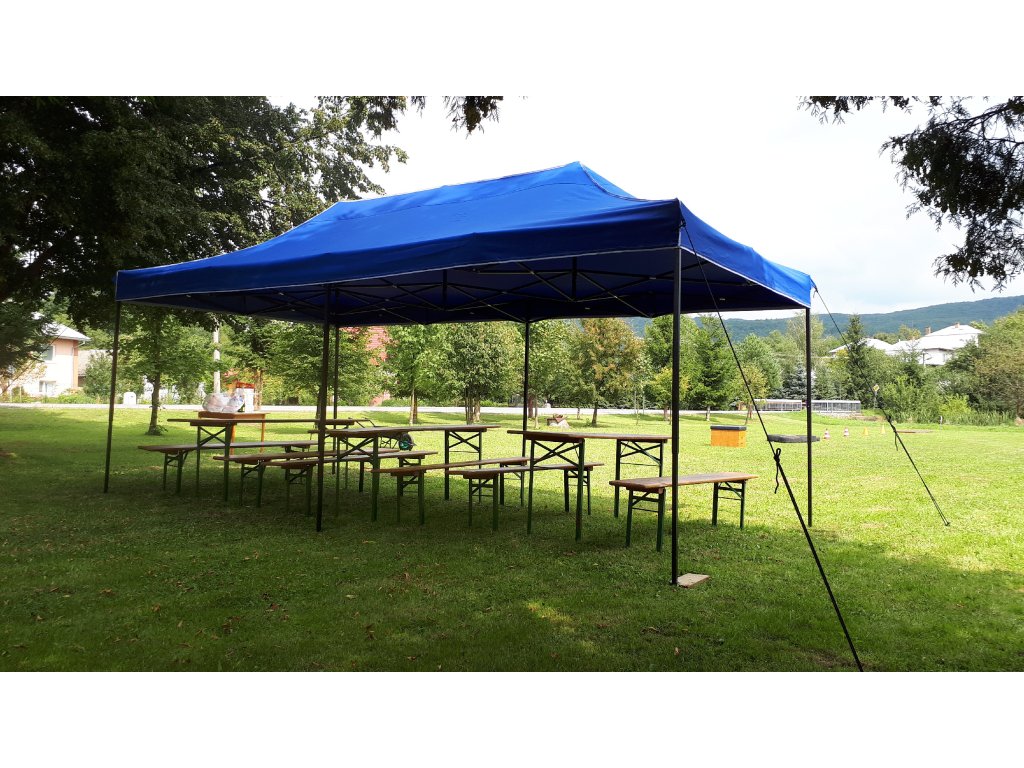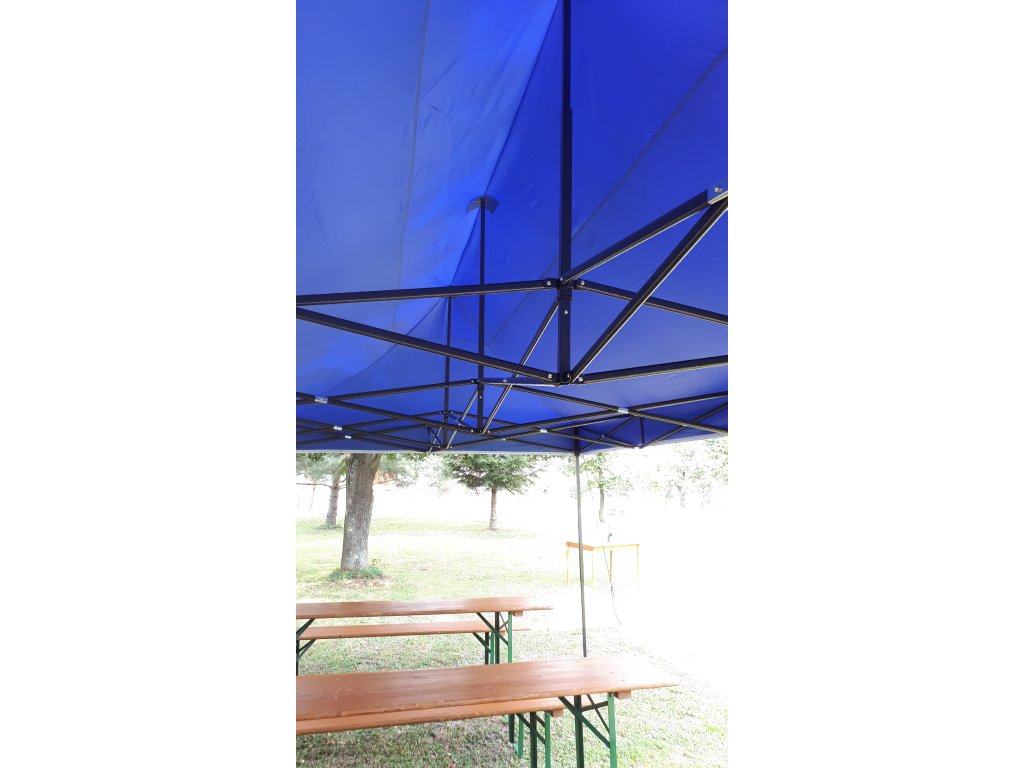 Hitro zložljiv vrtni škarjasti šotor primeren za rojstnodnevne zabave, zabave, gostinske prireditve, avto-moto športe, festivale, koncerte, oglaševalske agencije, prostovoljna gasilska društva. Popolnoma kovinska konstrukcija zagotavlja zadostno trdnost.