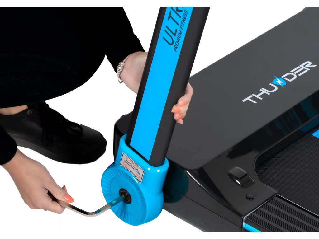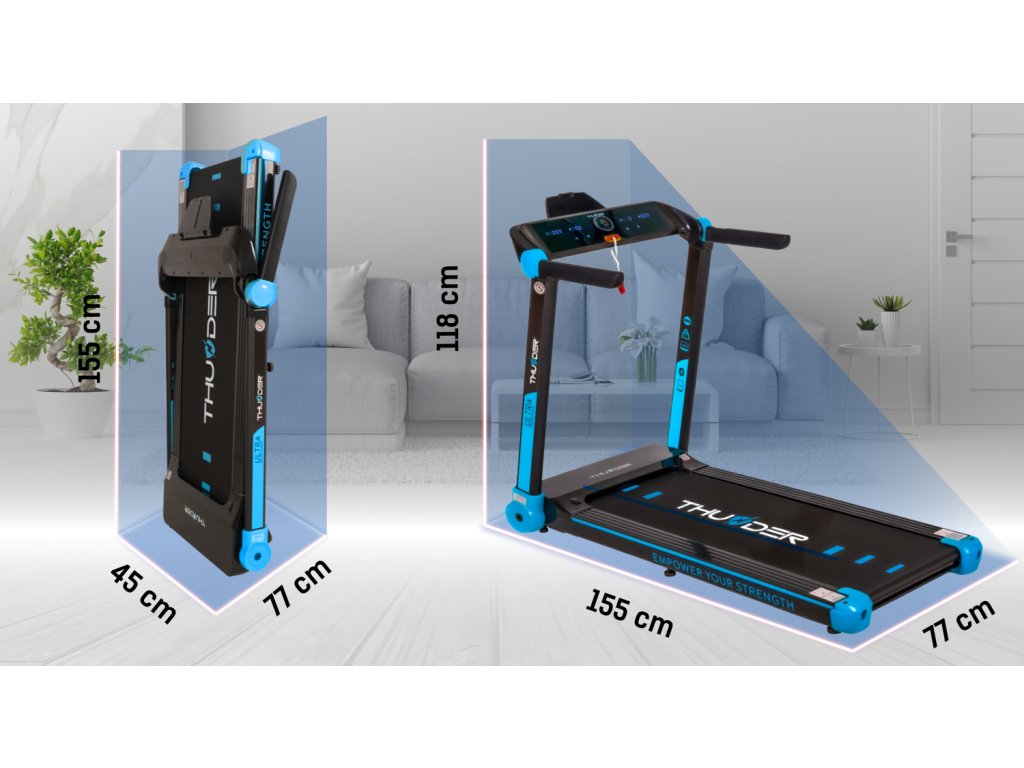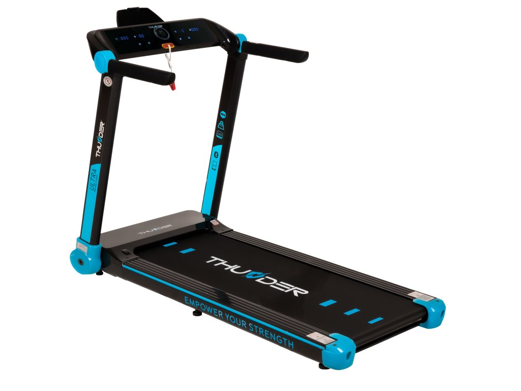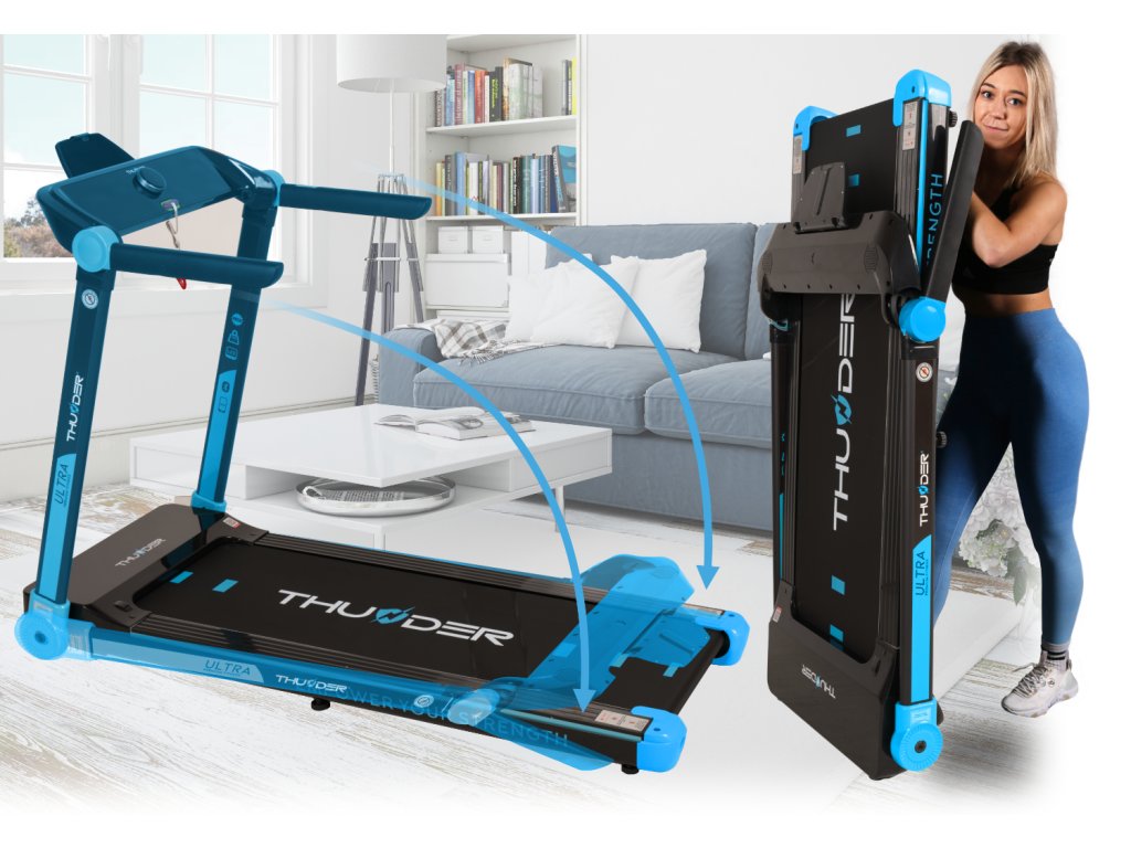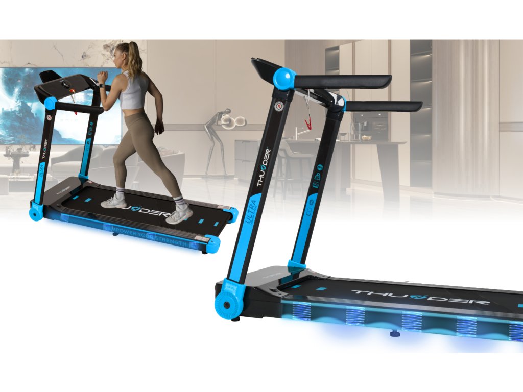 Tekalna steza THUNDER® ULTRA je idealna izbira za tiste z manj prostora. Zaradi svojega dizajna se steza zlahka prilega v majhno stanovanje in ko je zložena ne zavzame skoraj nič prostora. Tekalna steza je popoln spremljevalec zdravega in aktivnega življenjskega sloga.